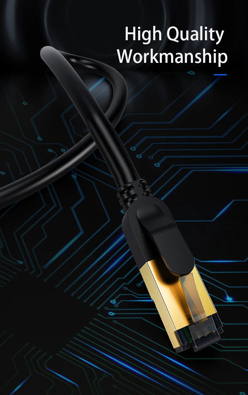 Cat 8 Ethernet Cable supports bandwidth up to 2000MHz and 40Gbps data transmission speed, ensuring stable network speed for you to online gaming, surf the Internet, online HD video streaming, upload, download, and more.