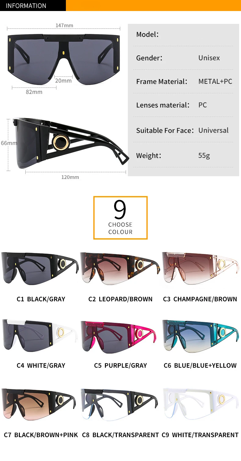 Fashion Clear Lens Oversized Eyewear Women Brand Designer Large White Sunglasses Ladies Big Frame Sun Glasses Windproof Goggles