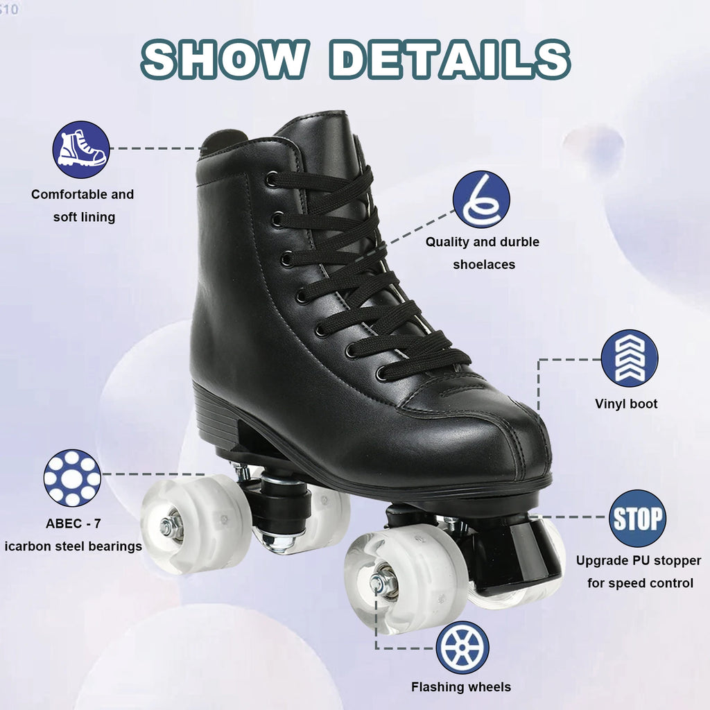 Hot Outdoor Skating Sport Shoes Double Row Roller Skates Pu Leather Roller Skate Shoes 4 Wheels Quad Sneakers Breathable Comfort