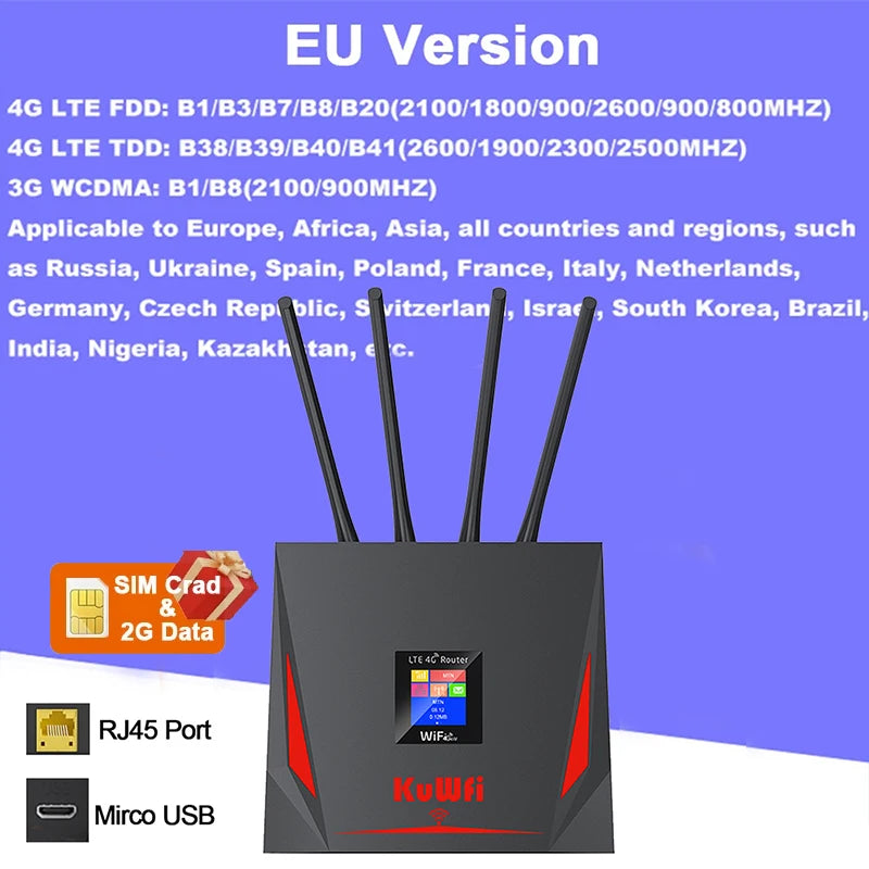 With 2GB free SIM card cover AT&T network :4G router includes a SIM card. Initially, it contained 2 gigabytes of free data. Once the data runs out, you need to top up your card every month to get more data. We will provide you with a quality transportation package that you can purchase with confidence. There is no need to prepare additional SIM cards and change APN on the network side. As long as you turn on your router, you can use wifi. This is the perfect solution for those who need reliable and fast Internet