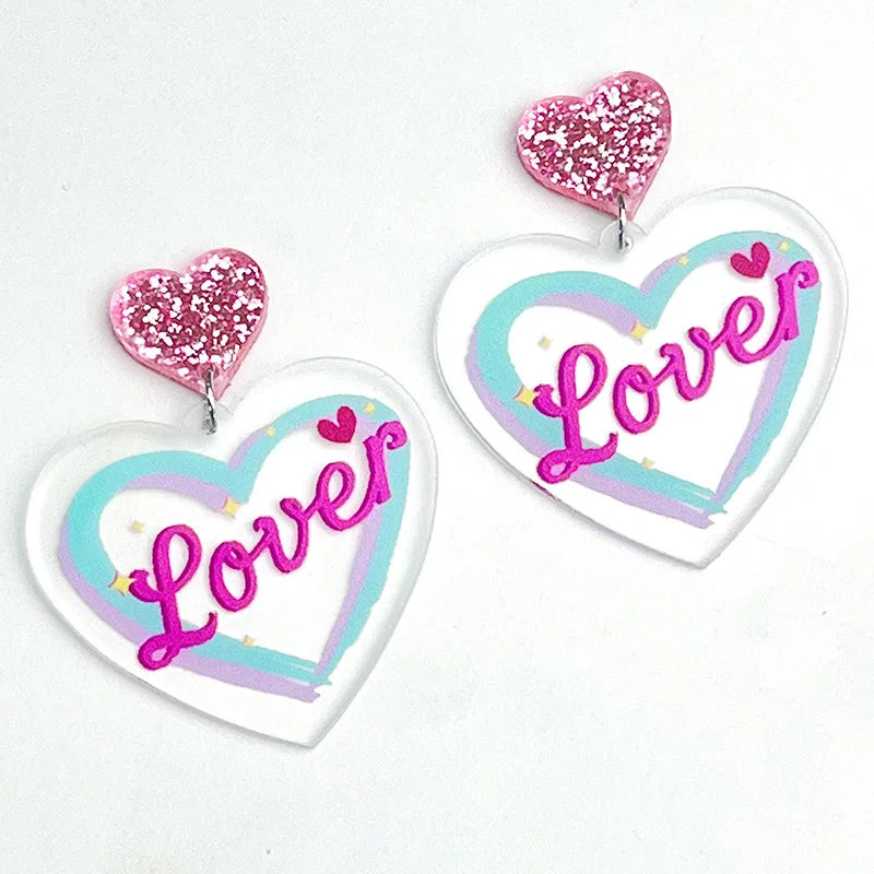 New Valentine's Day Earrings Love Letter Shiny Pink Butterfly Love Tape Simple Acrylic Earrings Valentine's Day Decorative Gift