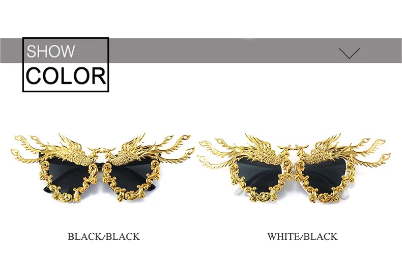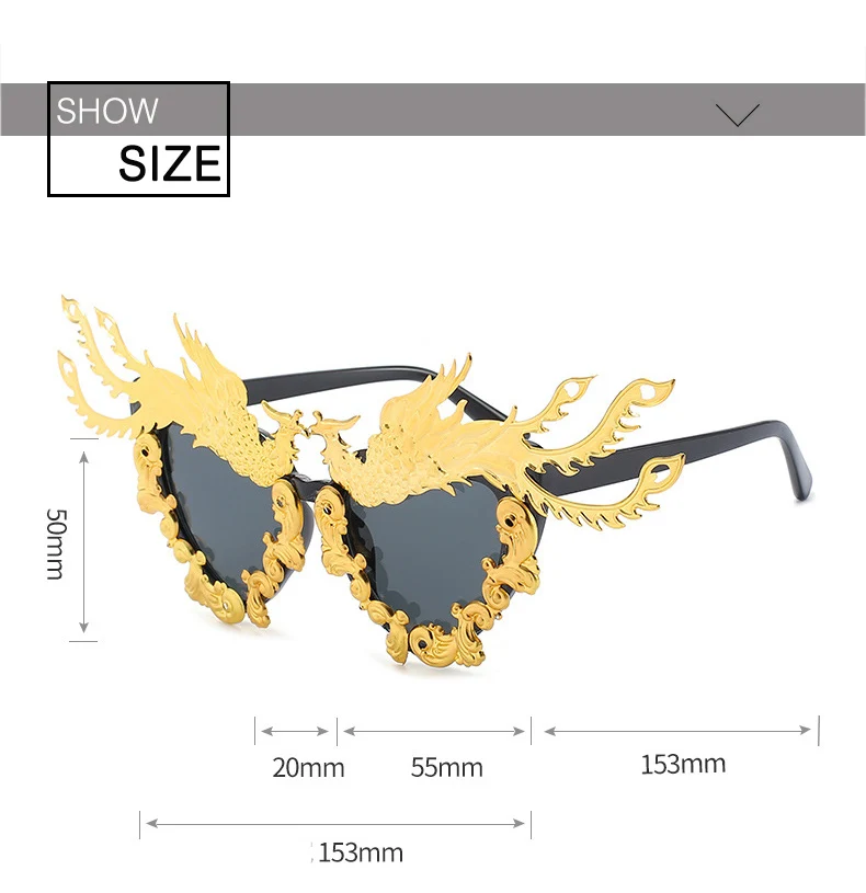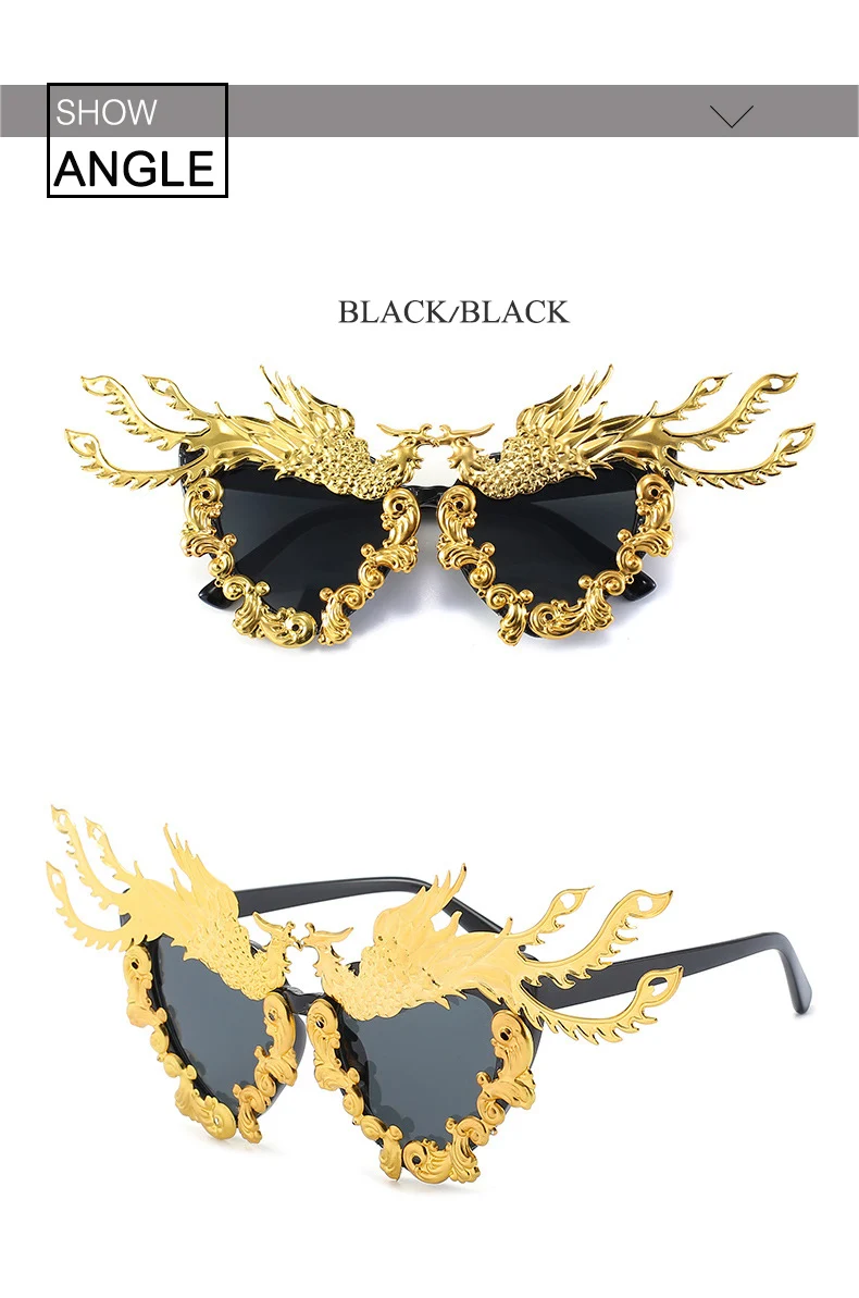 OEC CPO Fashion Party Dragon And Phoenix Sunglasses Women New Unique Colorful Gold Punk Sun Glasses Female Eyeglasses O992