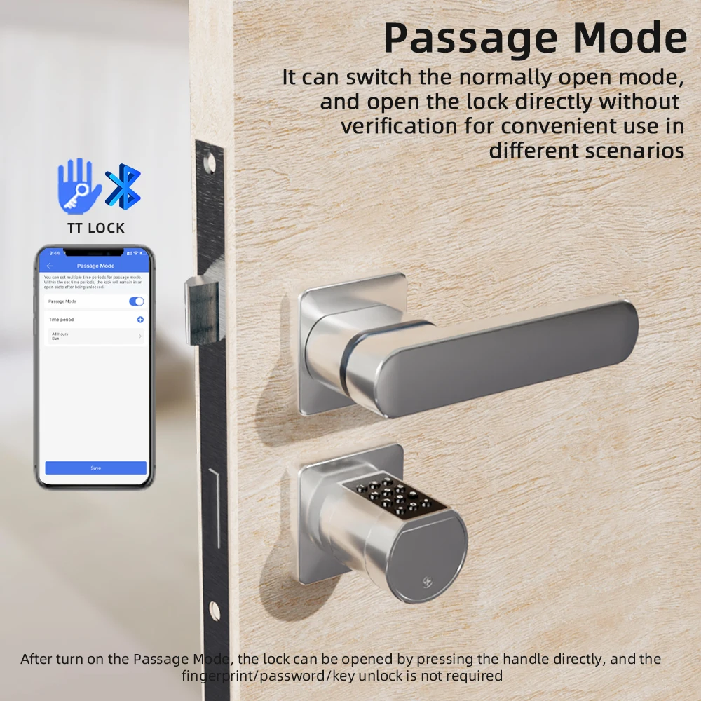 It can set passage mode,and open the lock directly without verification for convenient use indifferent scenarios