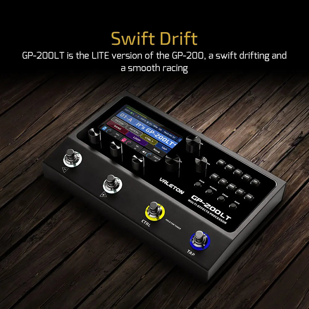 Based on GP-200's technology, Valeton now delivers this predecessor's Lite version -- GP-200LT. With 4 footswitches, enormous I/O options, large color-display screen and user-friendly buttons and knobs, GP-200LT will fit into any scenario to become your go-to gear.
