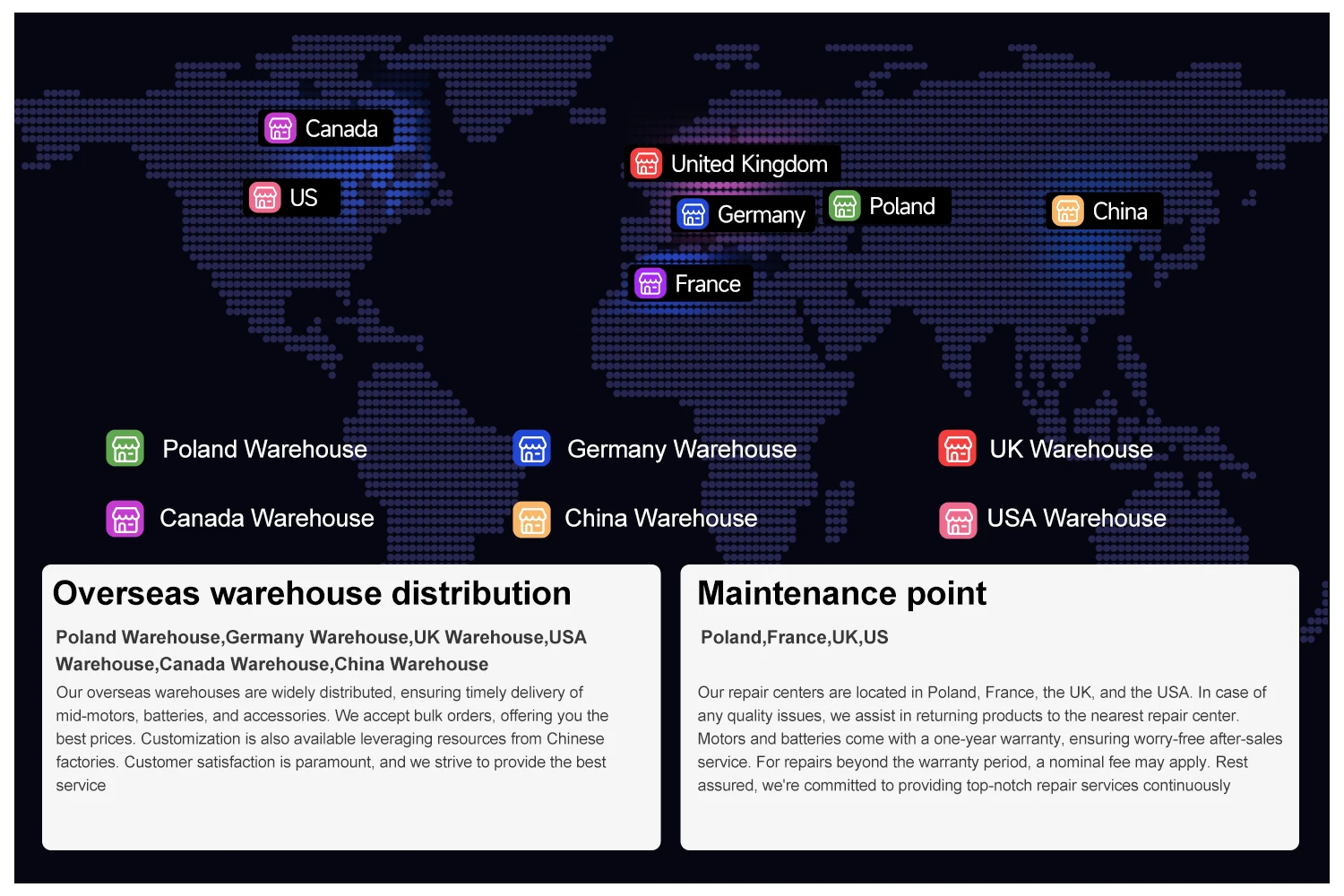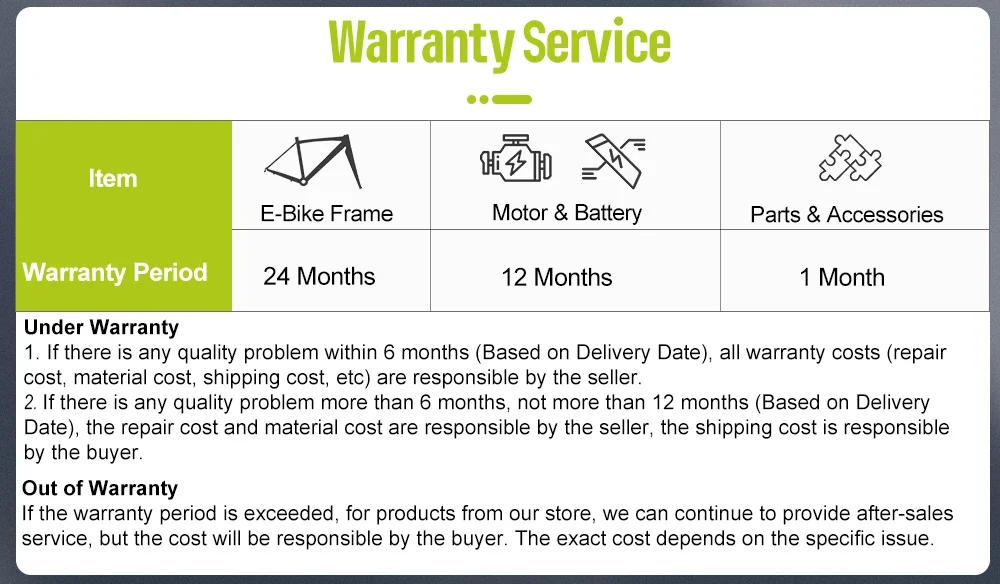 Motor & Battery:12months quality warranty for motor and battery