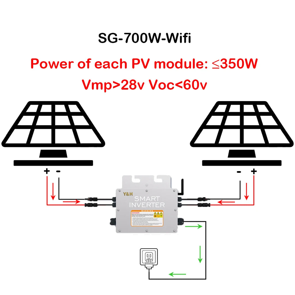 Y&H Solar Grid Tie Micro Inverter 600W 700W 800W 1000W MPPT Grid Solar Inversor AC120V/220V Pure Sine Wave Out Home Solar IP65