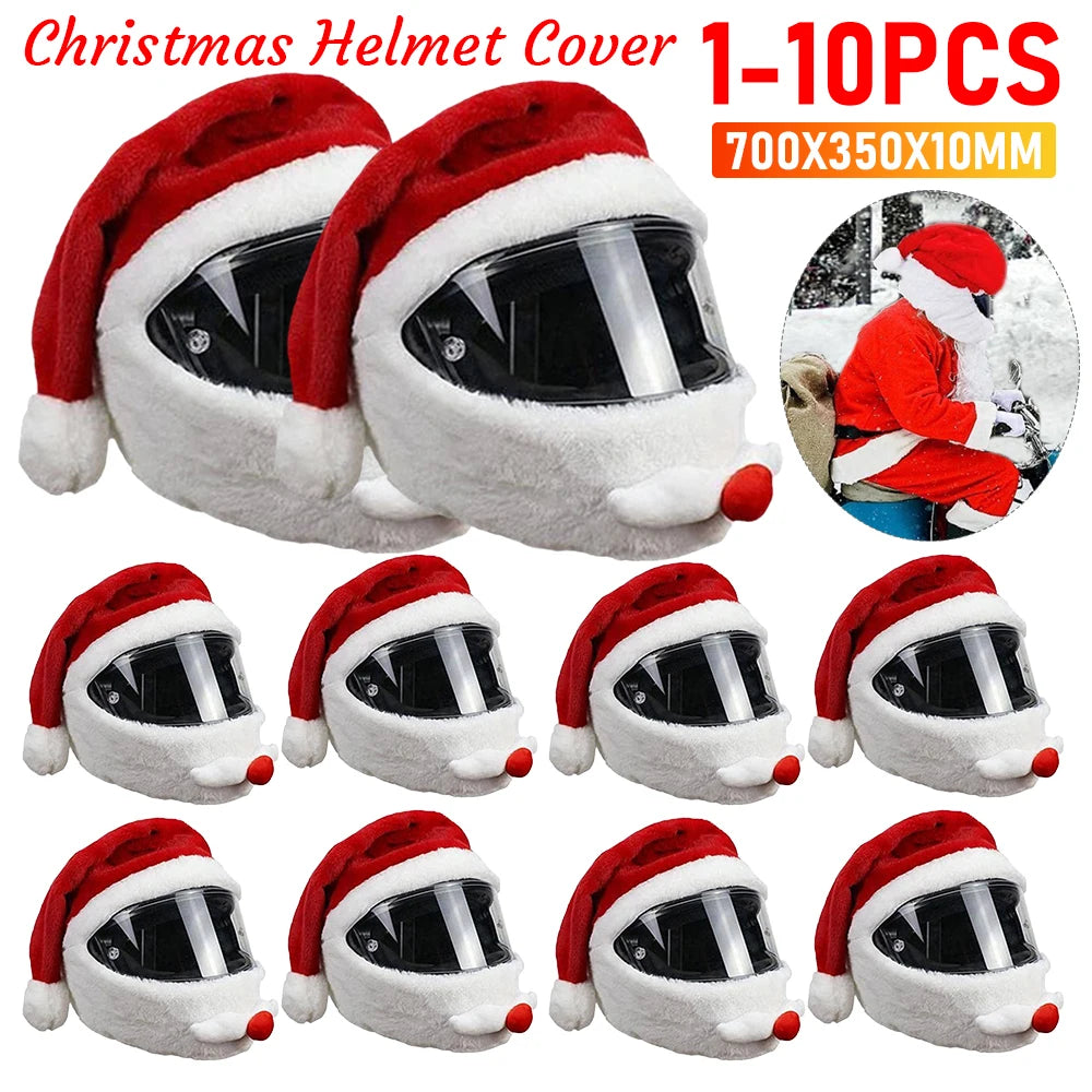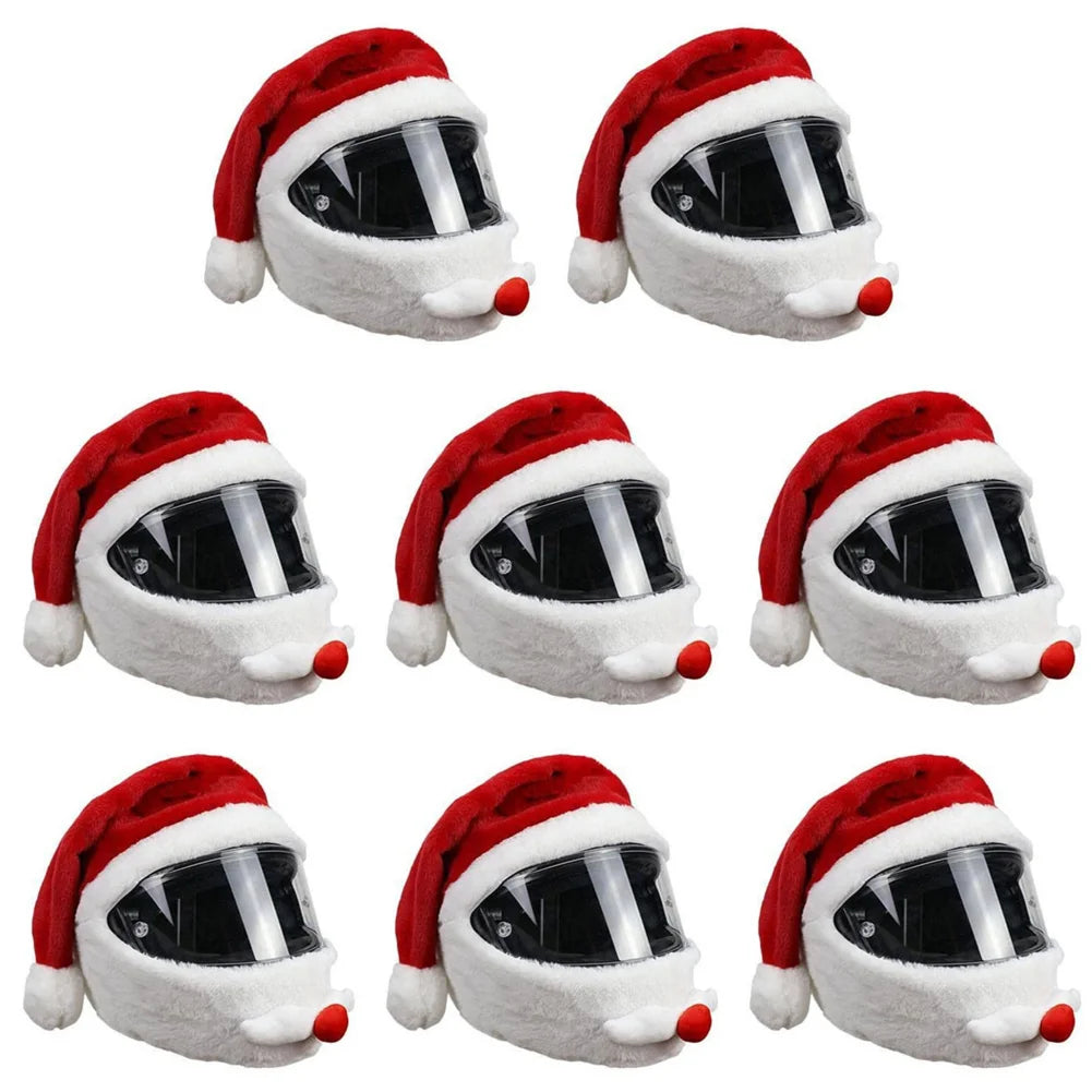1-8PCS Santa Cycling Helmet Christmas Motorcycle Full Helmet Full Face Safe Hat Creative Plush Cover Christmas Decoration Gifts