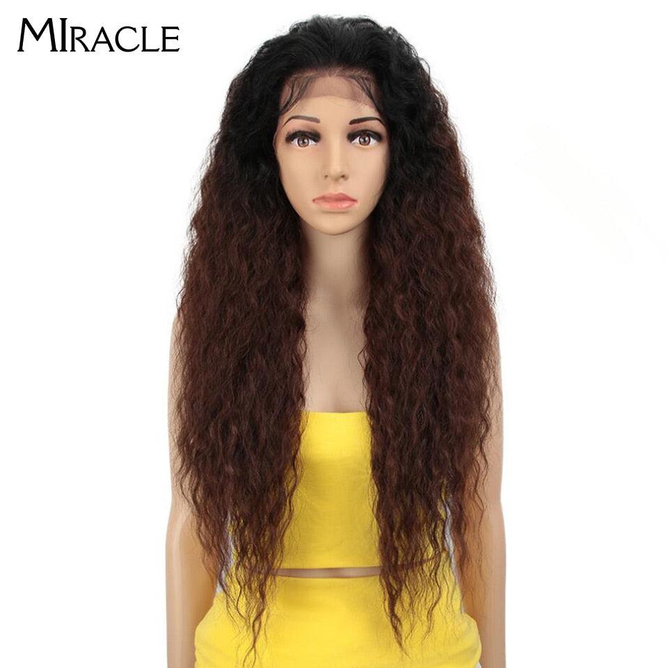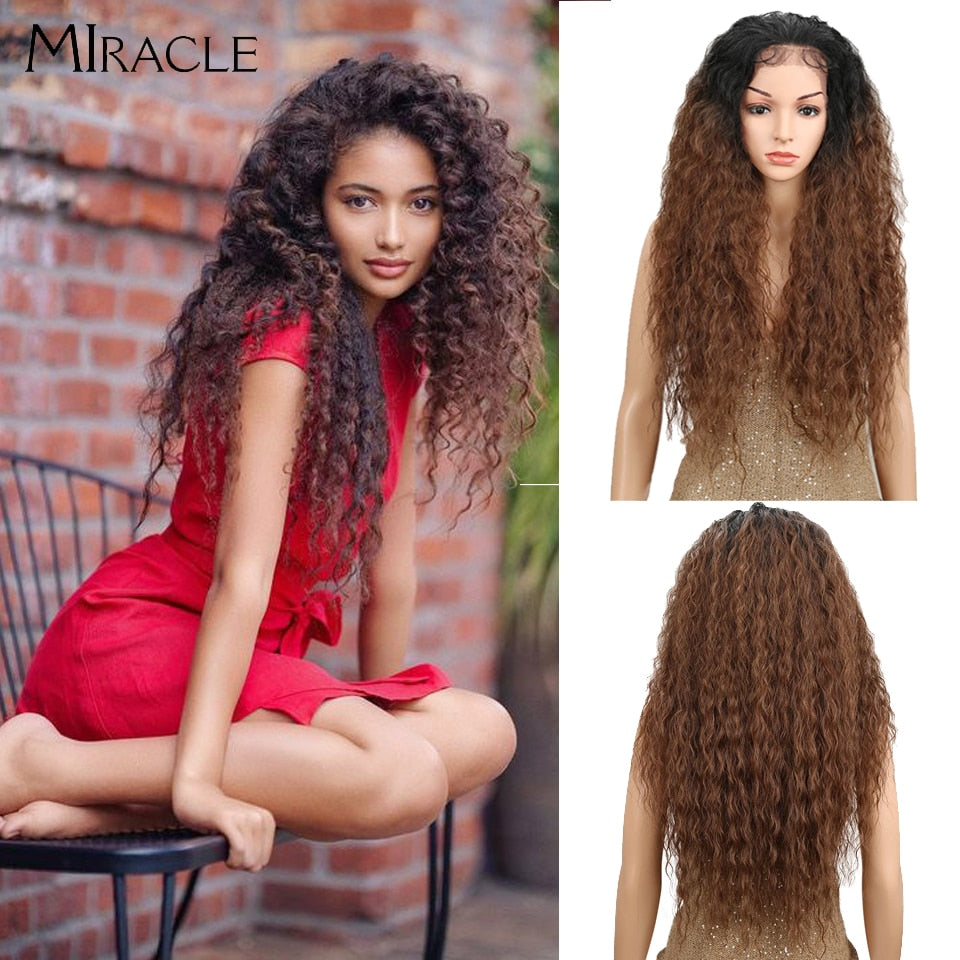 Miracle30" High Temperature Fiber Free Part Long Ombre Natural Wave Lace Front Baby Hair Wigs Synthetic Afro Wigs For Black Women