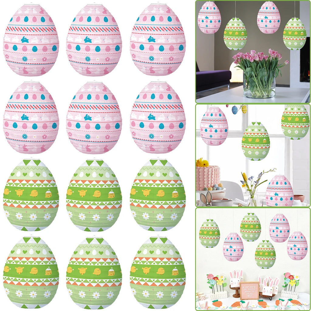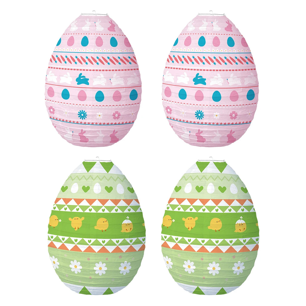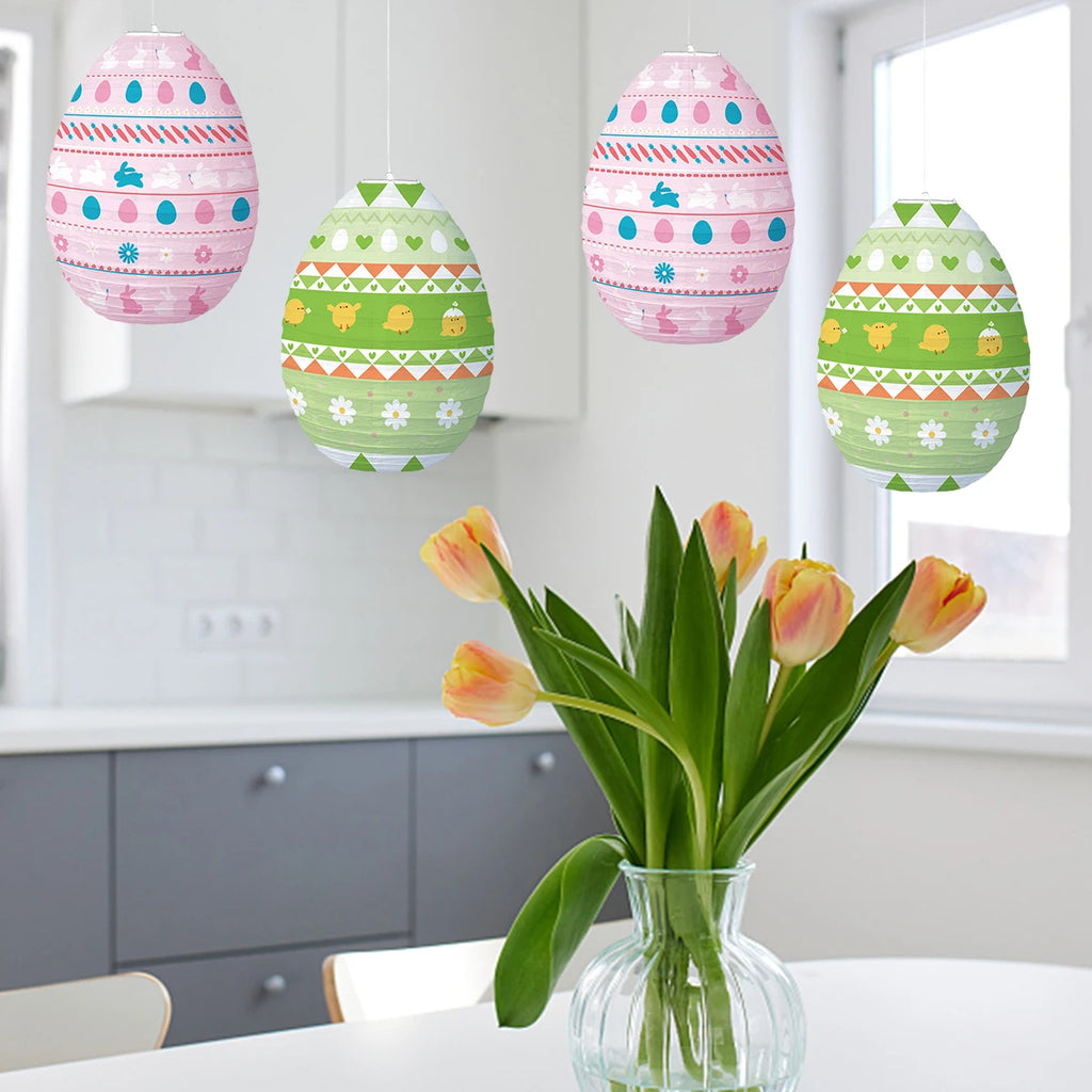 2/4Pcs Easter Paper Lanterns Easter Egg Shaped Party Decorations Flower Chick Bunny Decorative Hanging Lanterns for Home Easter Birthday Party Supplies