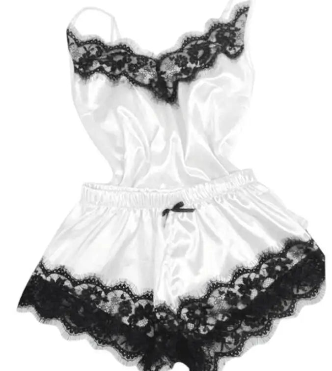 2024 New Women Bow Sleepwear Sleeveless Strap Nightwear Lace Trim Satin Cami Top Pajama Sets femme sexy lingerie pyjamas women