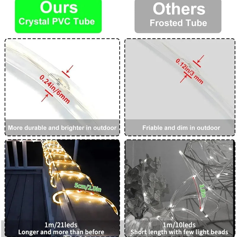 - 【Widely used indoor and outdoor】: You can wrap these waterproof rope lights around the Christmas tree, around backyard fence, living room, porch columns, camping trailer, put them around your window, door, hallway, and so on.