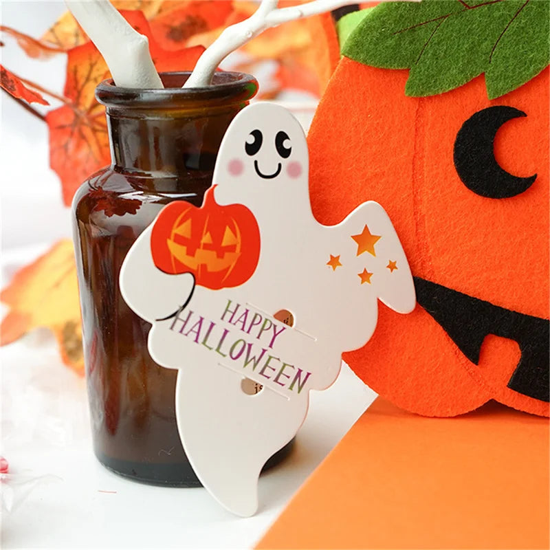 50PCS Halloween Lollipop Card Multi Pumpkin Ghost Skull Cat Lollipop Holder Halloween Party Supplies Trick Or Treat Candy Pack
