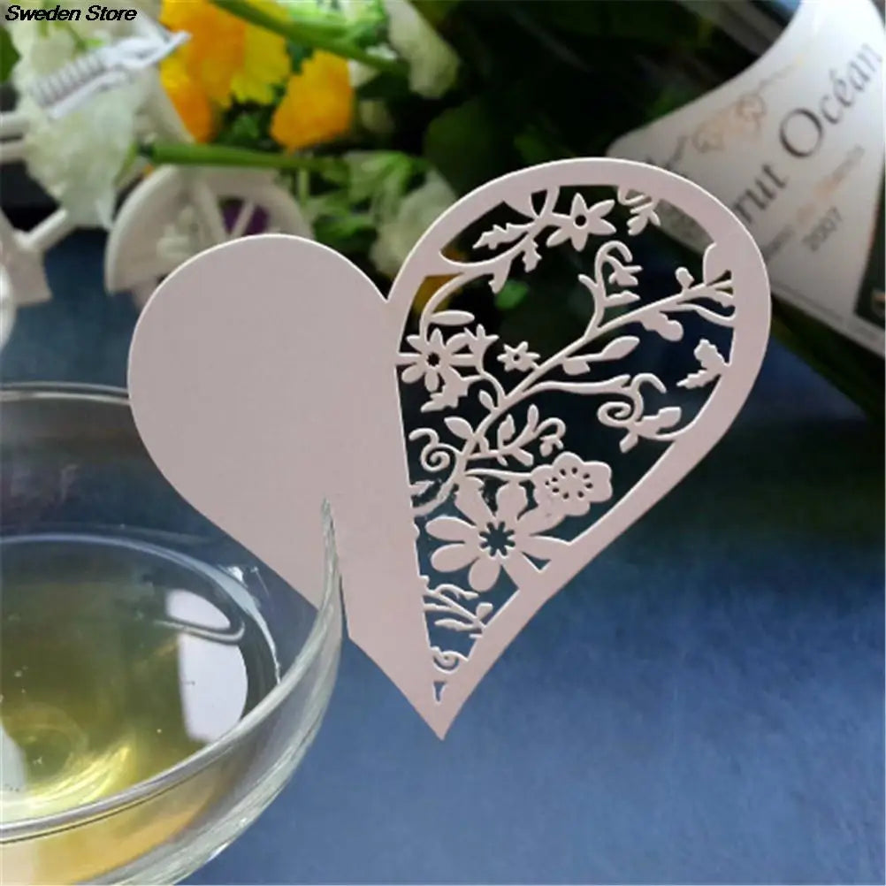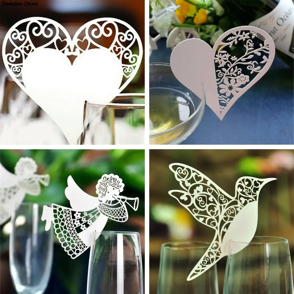 50pcs/set Wedding Table Decoration Place Cards Laser Cut Bird Heart Floral Wine Glass Place Cards For Party Decoration