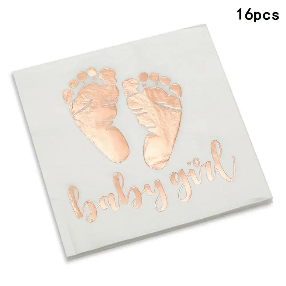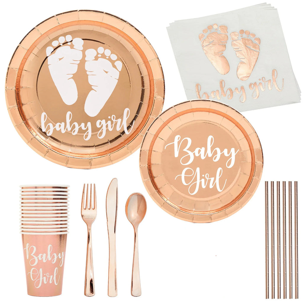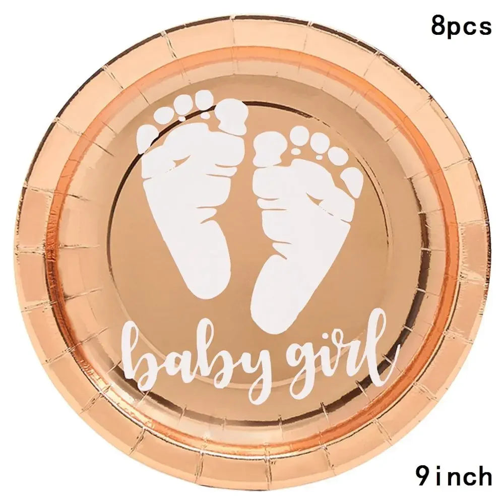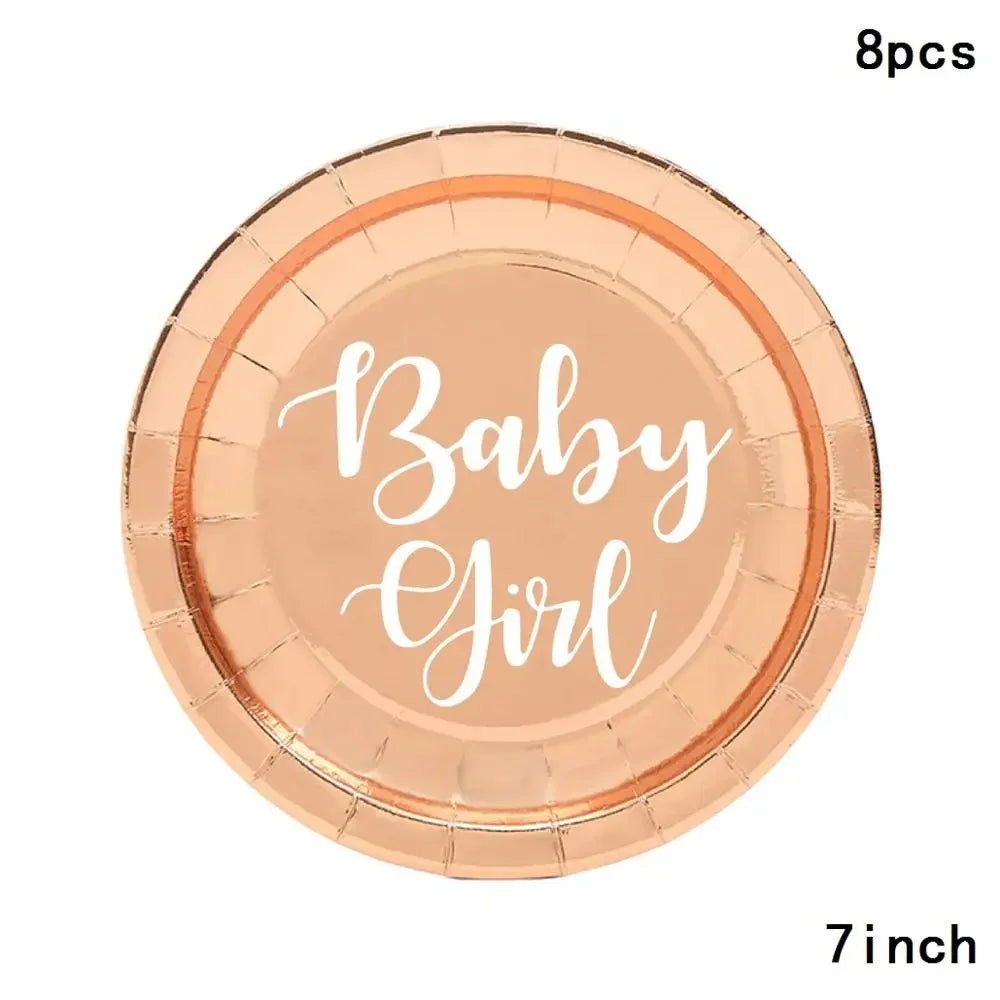 8pc Baby Girls Disposable Tableware Baby Girl Paper Napkin Plate Cup Baby Girl Happy Birthday Party Decor Kids Baptism Supli