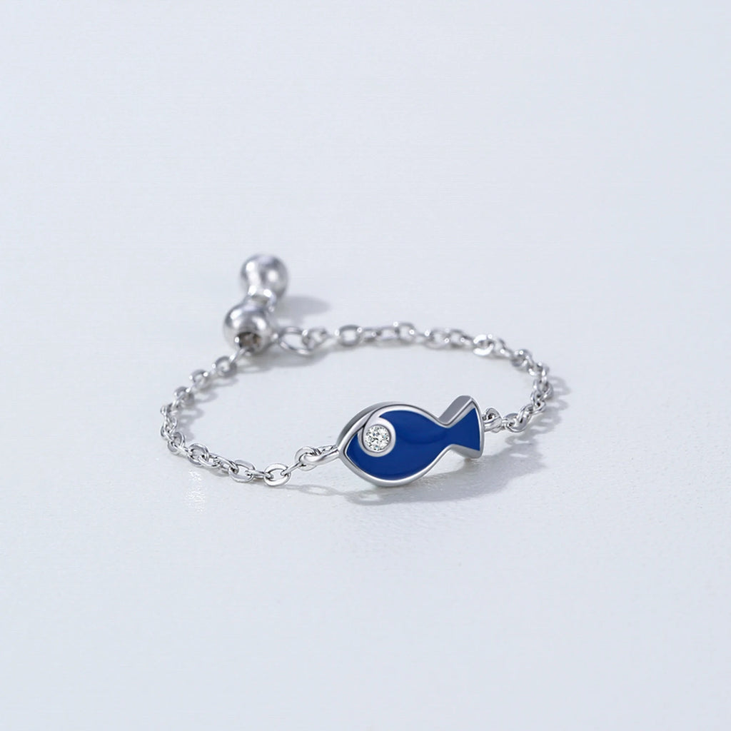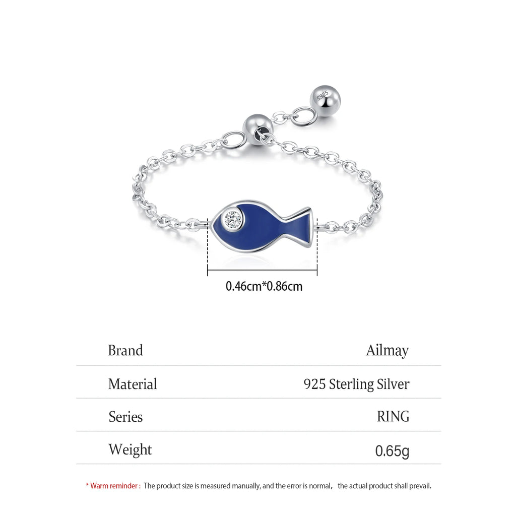 Ailmay 925 Sterling Silver Blue Enamel Lovely Small Fish Adjustable Ring For Women's Daily Wear, Parties, And Gift Giving