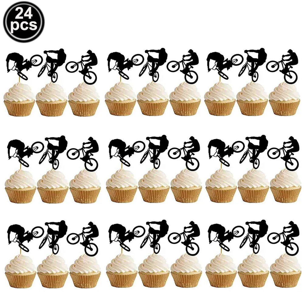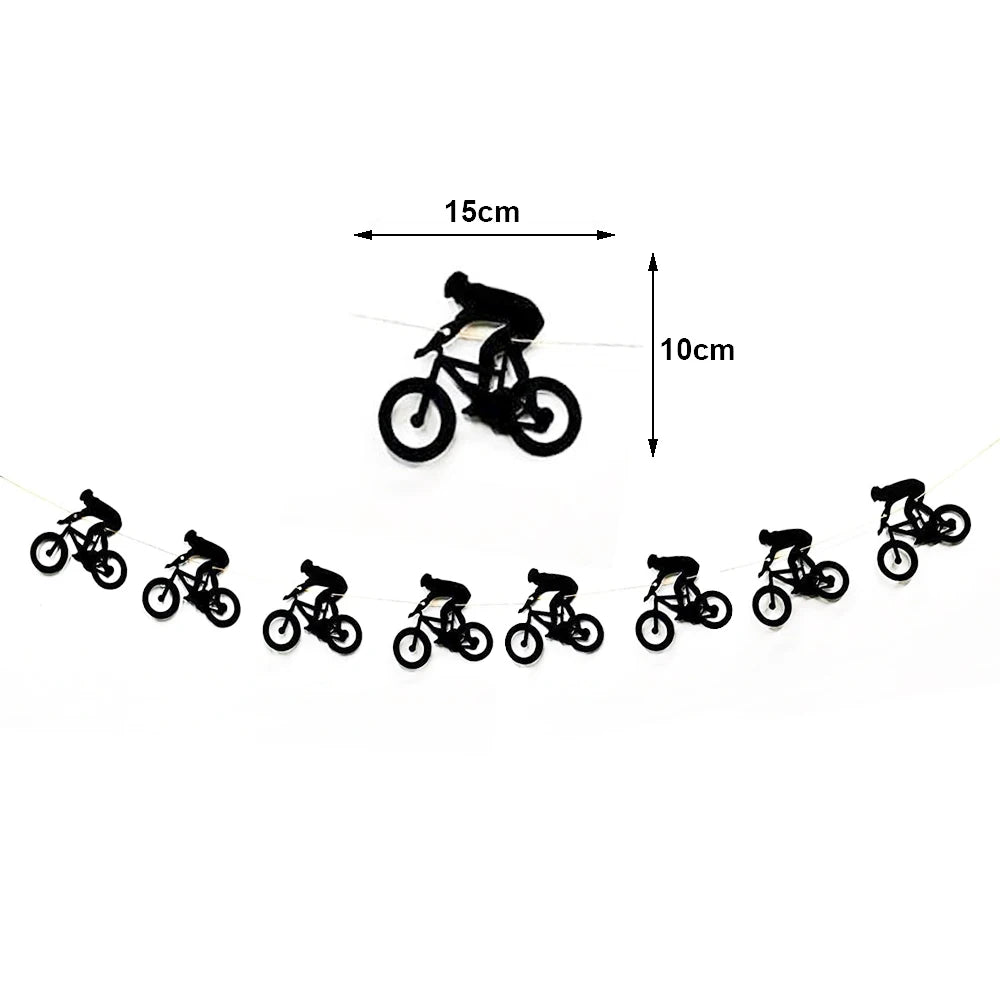 Bike Game Birthday Decorations Bicycle Garland Banner Cycling Rider Cupcake Toppers Boy Birthday Baby Shower Party Decoration