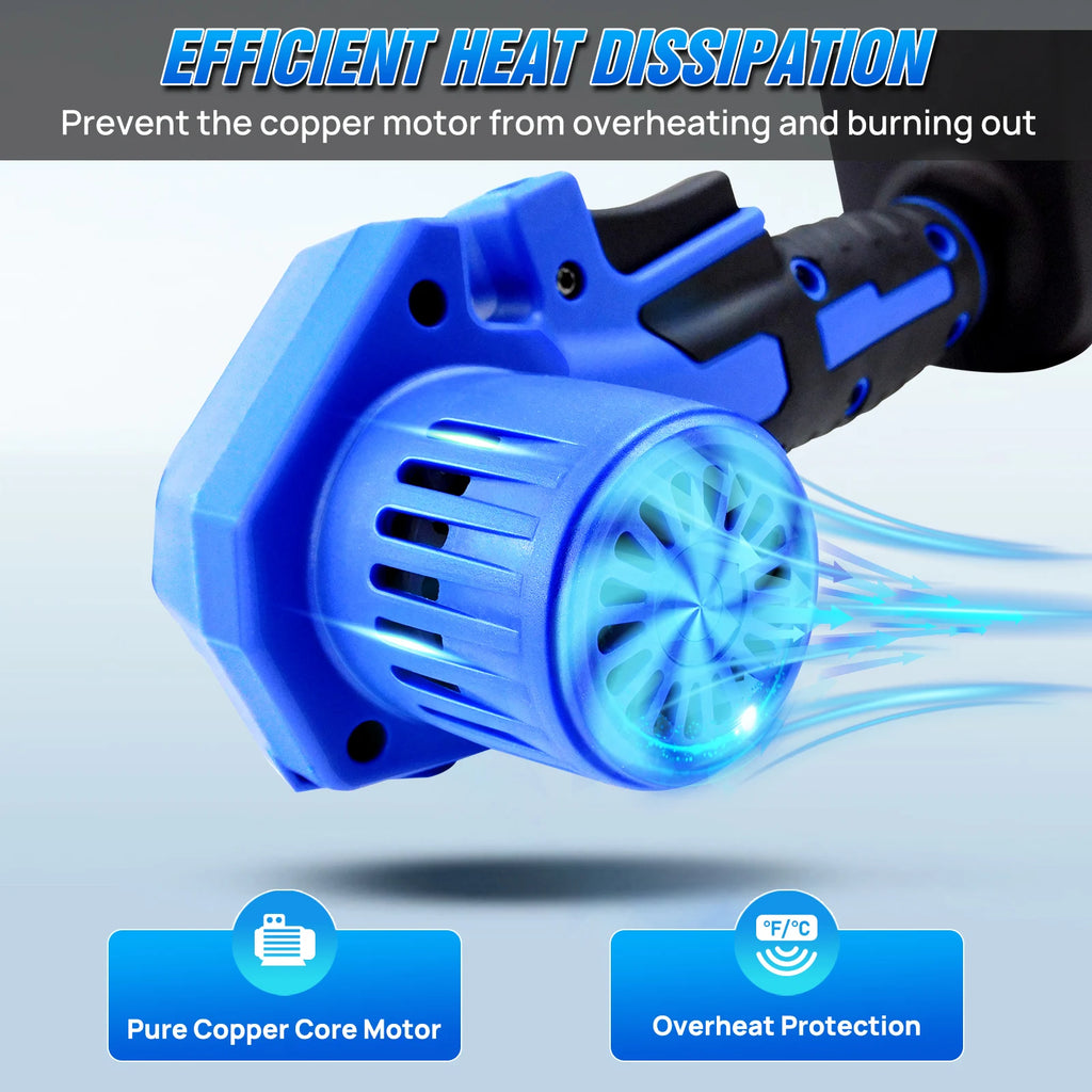 【Powerful Brushless Motor】 Our mini chainsaw has a powerful brushless motor that automatically stops when overloaded, avoiding internal overheating and burnout, and extending its service life. At the same time, the brushless motor is very quiet during operation, runs smoothly, and does not produce too much noise. Under efficient working conditions, the power of a brushless motor can be 2-3 times higher than that of a brushless motor.