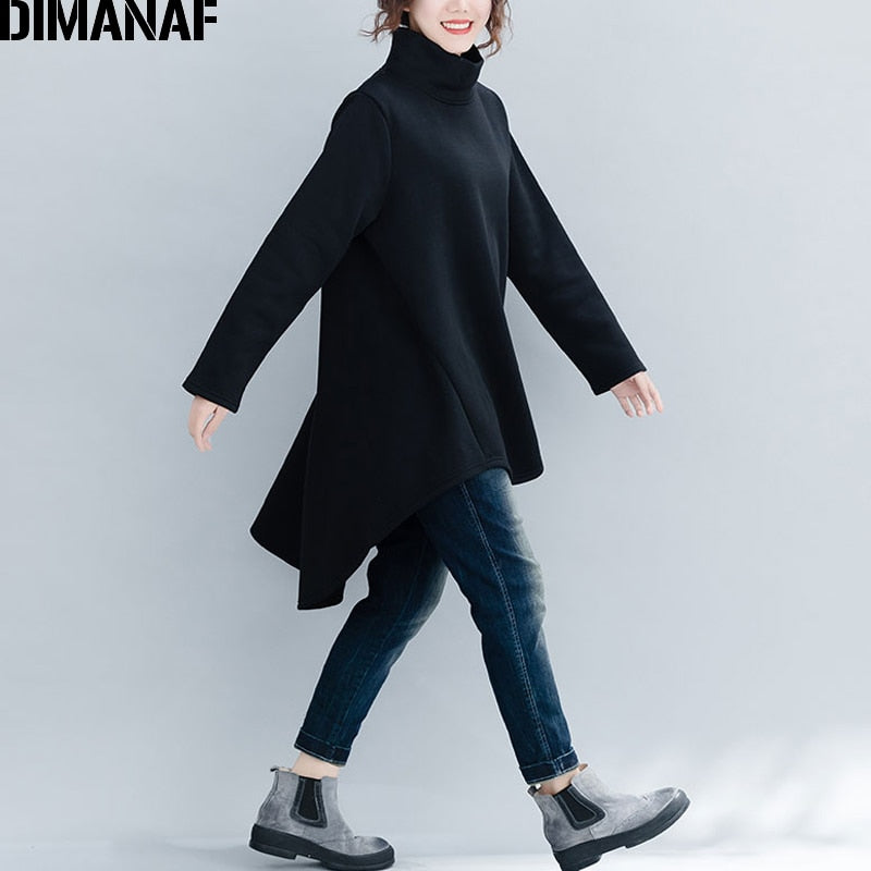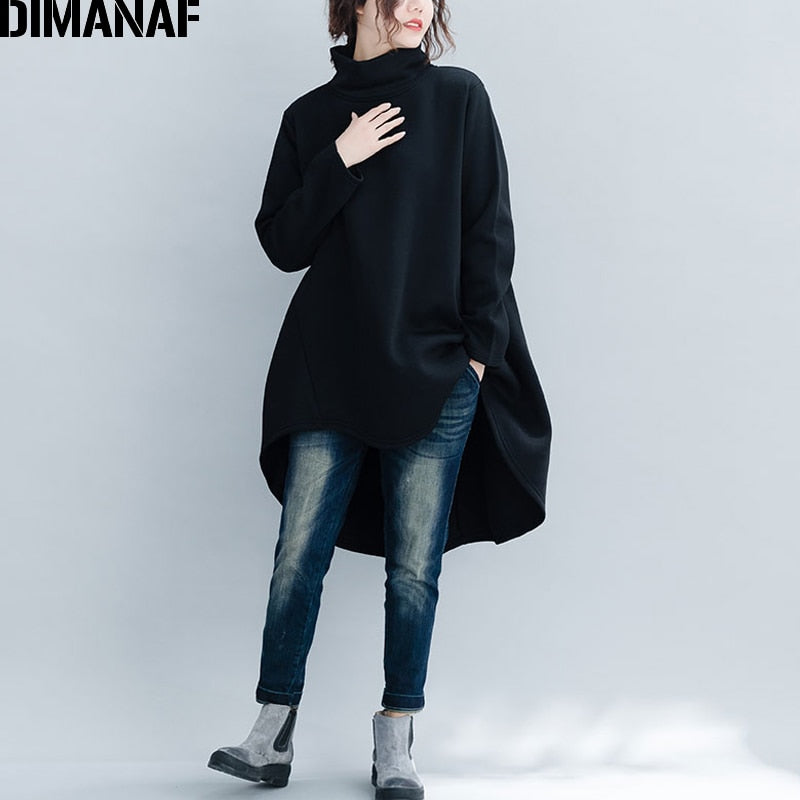 DIMANAF, jersey de Otoño Invierno, ropa de mujer, sudaderas con capucha cálidas, Tops gruesos de punto de algodón sueltos, cuello alto, rojo y negro