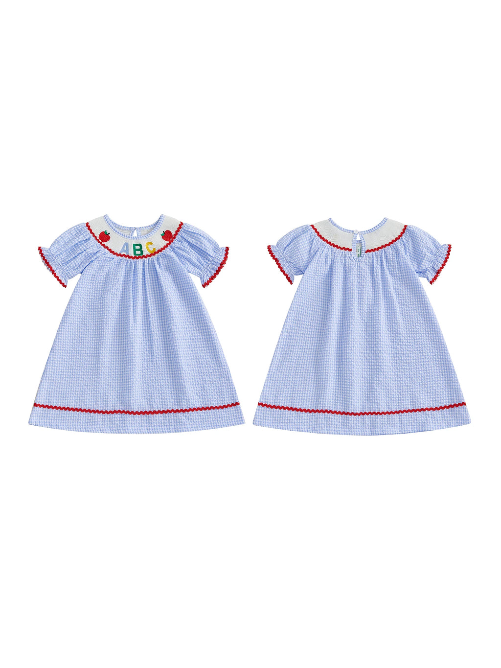 Kids Girls Dress, Short Sleeve Crew Neck Plaid Embroidery Summer Dress Back to School ClothesThe dress is super stylish, so your little girl can play outside, lounge at home, party, or get out and about in stylish comfort.