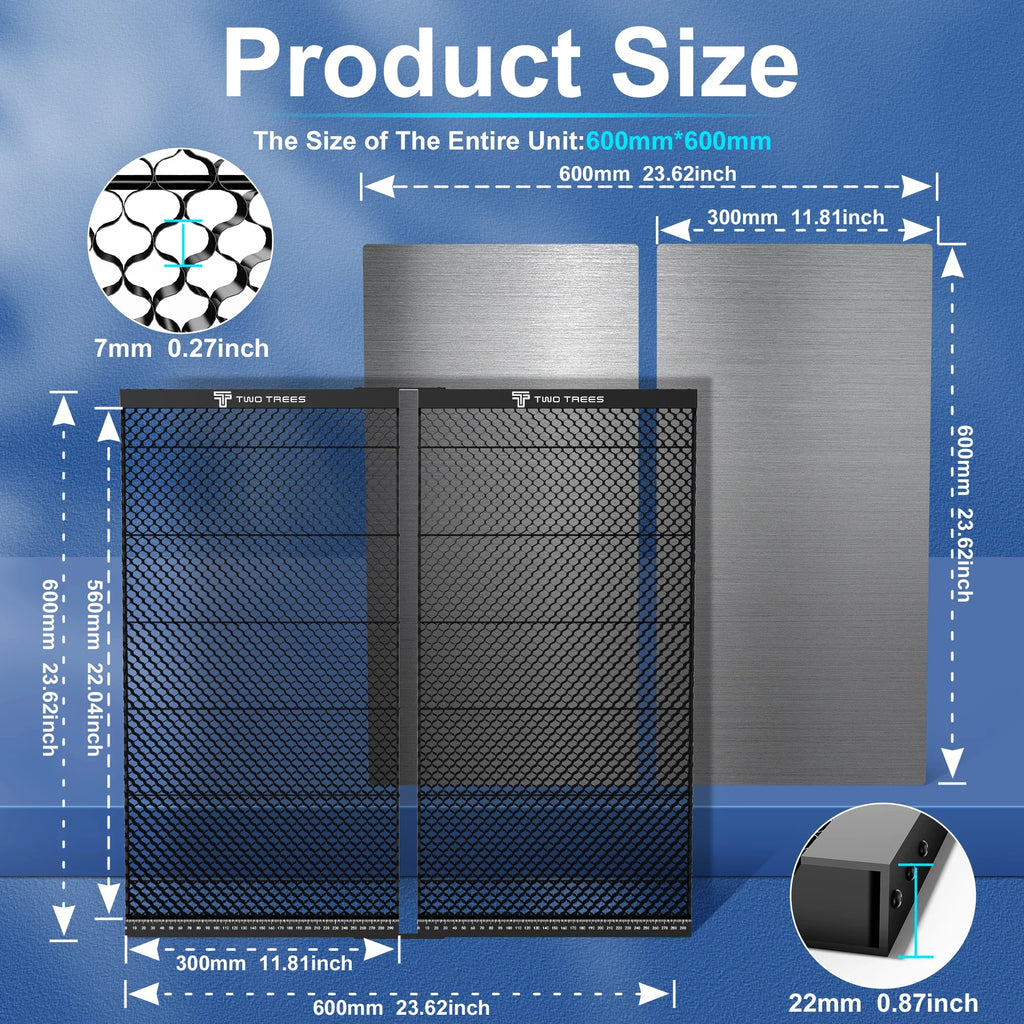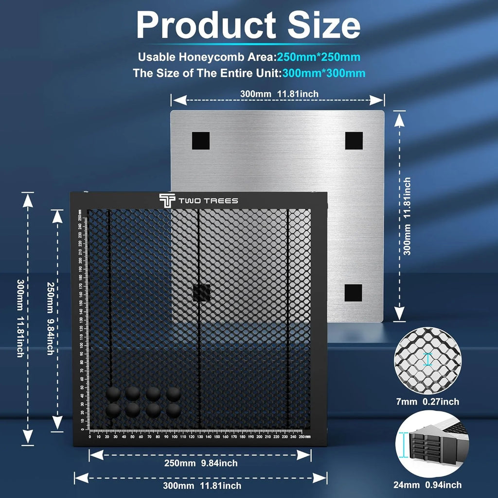 Heavy Duty Honeycomb Metal Table 300/400/500/600mm for Laser Engraver Cutting,Black Oxide Coated Fits for ORTUR xTool two trees