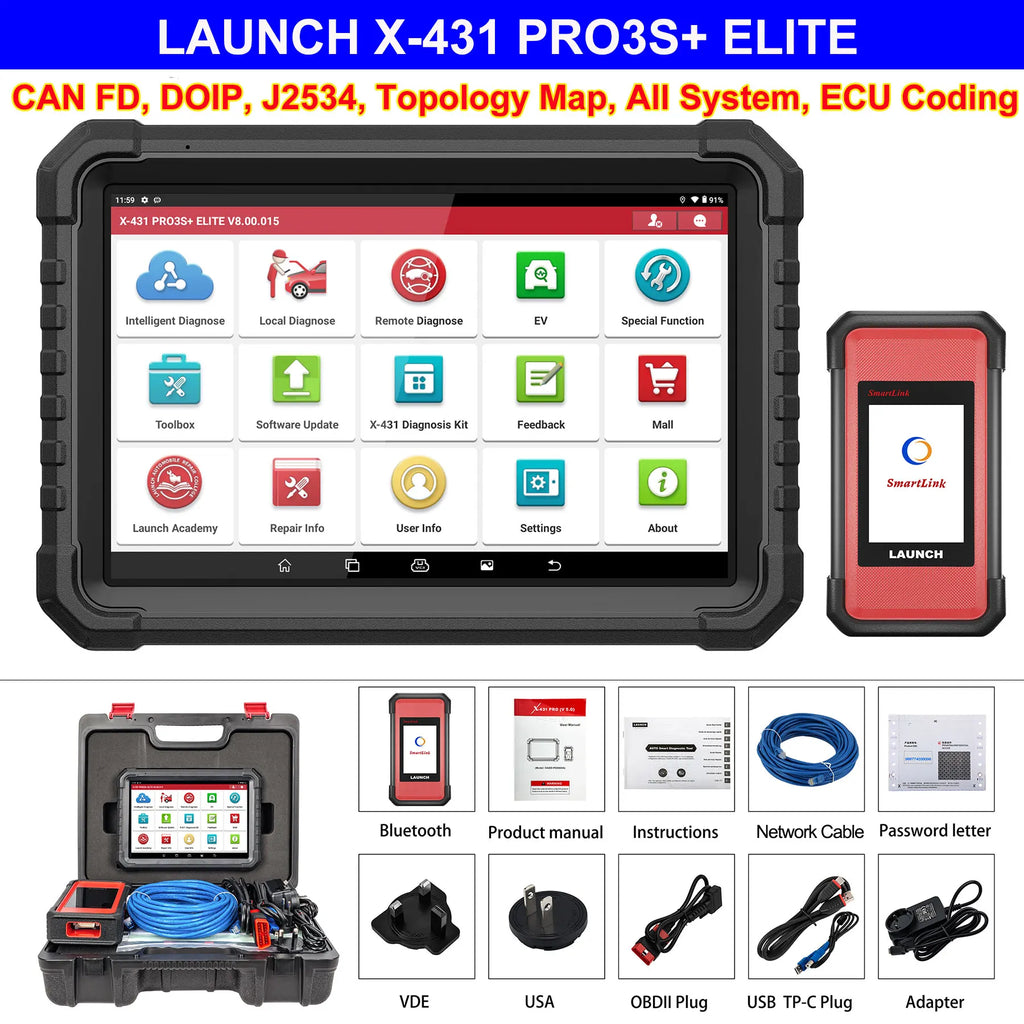 LAUNCH X431 PRO3S+ ELITE Smartlink C V2.0 10.1'inch J2543 Programming All system Professional diagnostic tool, ECU Online Coding, Bi-directional Control, Active Test, Guide Topology, Map function for V.A.G, 37+ Reset Function, CANFD DOIP, AUTO AUTH FCA SWG, Android 10 system RAM 4GB+ ROM 64GB, 2 Years Free Update, Lifetime Free Use