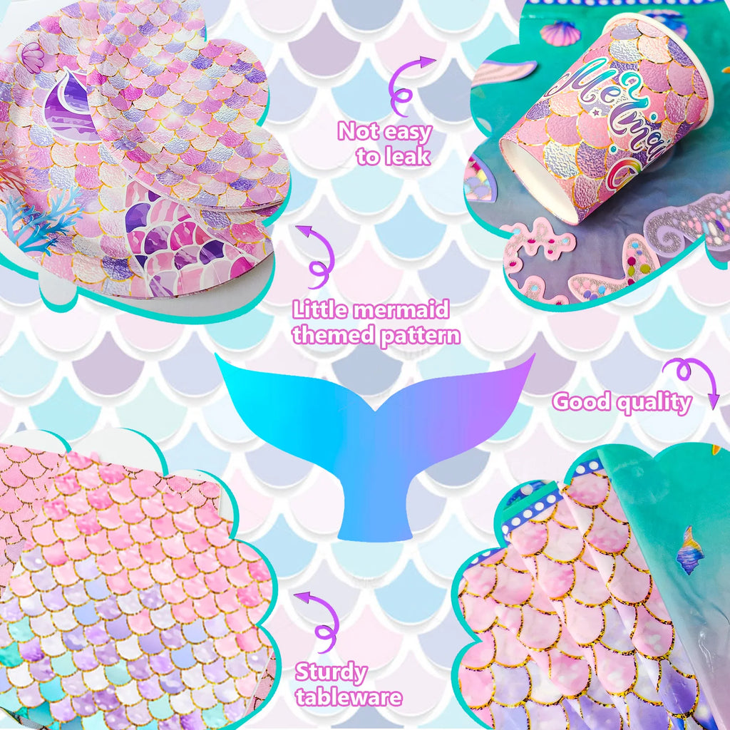 The mermaid birthday party tableware is made of high-quality materials,and the mermaid plates are durable and not easy to break,so you can feel confident using the mermaid party plates to serve food.