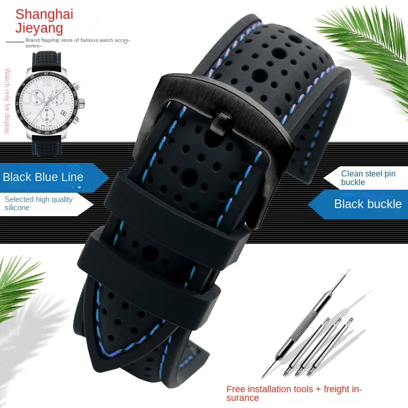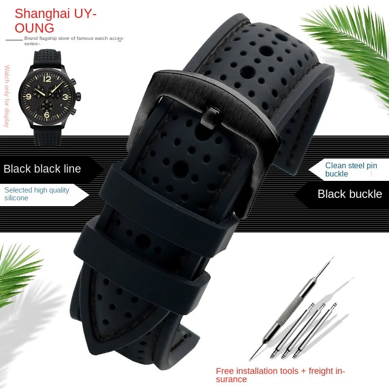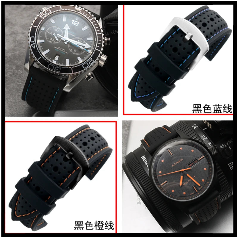 New Breathable Silicone Sports watchBand 18mm 20mm 22mm 24mm For any watch rubber Wrist strap Soft waterproof men's Accessories
