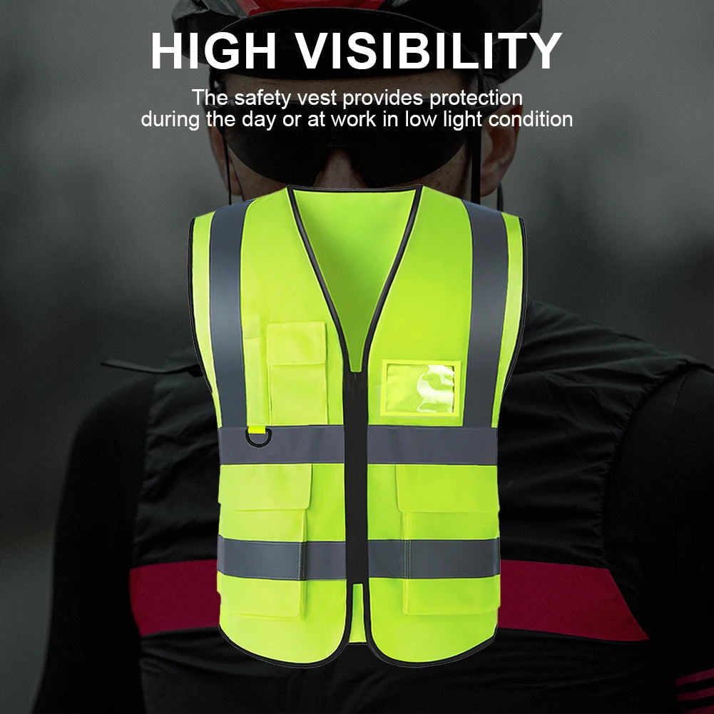 Reflective Safety Vest High Visibility Night Work Security Sleeveless Yellow Vest Construction Workwear Zipper & Pockets Adults