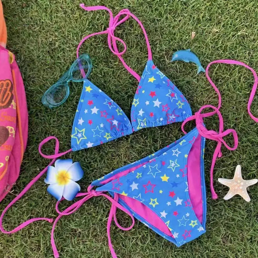 Sanrio pure desire wind pink hellokitty bikini split strap swimsuit summer beach vacation girls cute