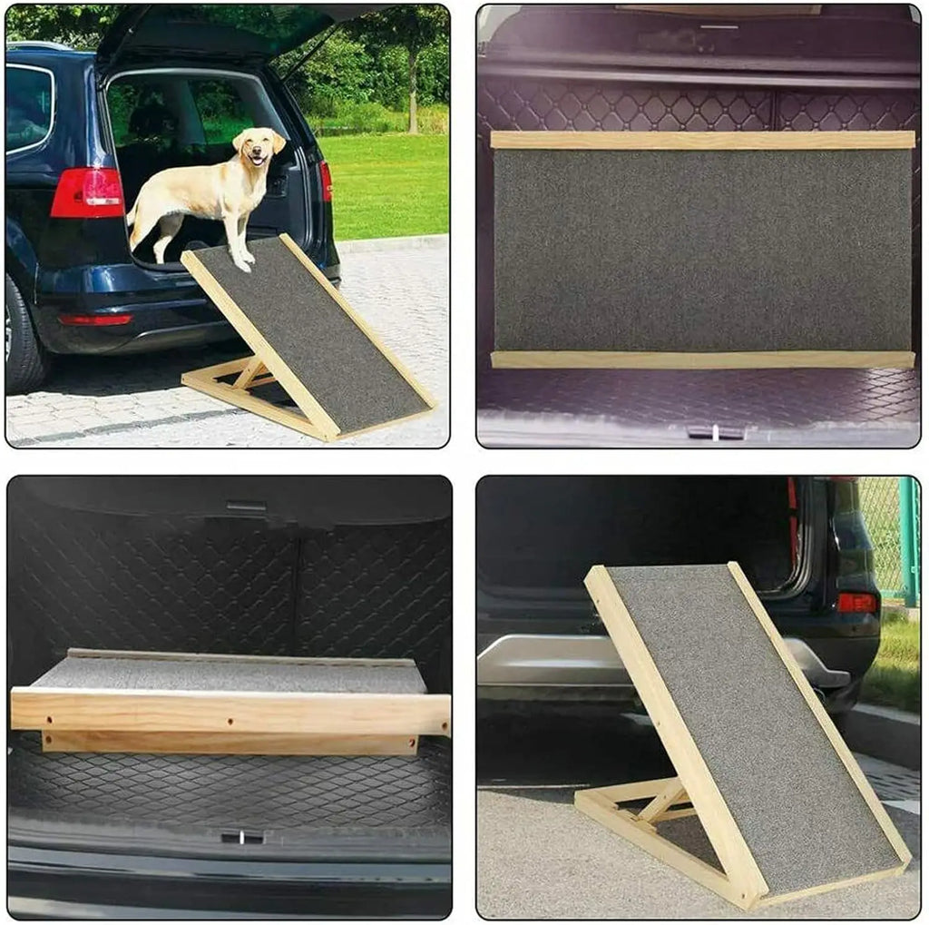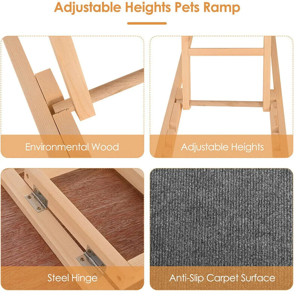 Solid Wooden Pet Ramp Car Dog Ladder, Height Adjustable with Non-slip Carpet Safety Pets Ladder, Wooden Dog Ramp Ladder
