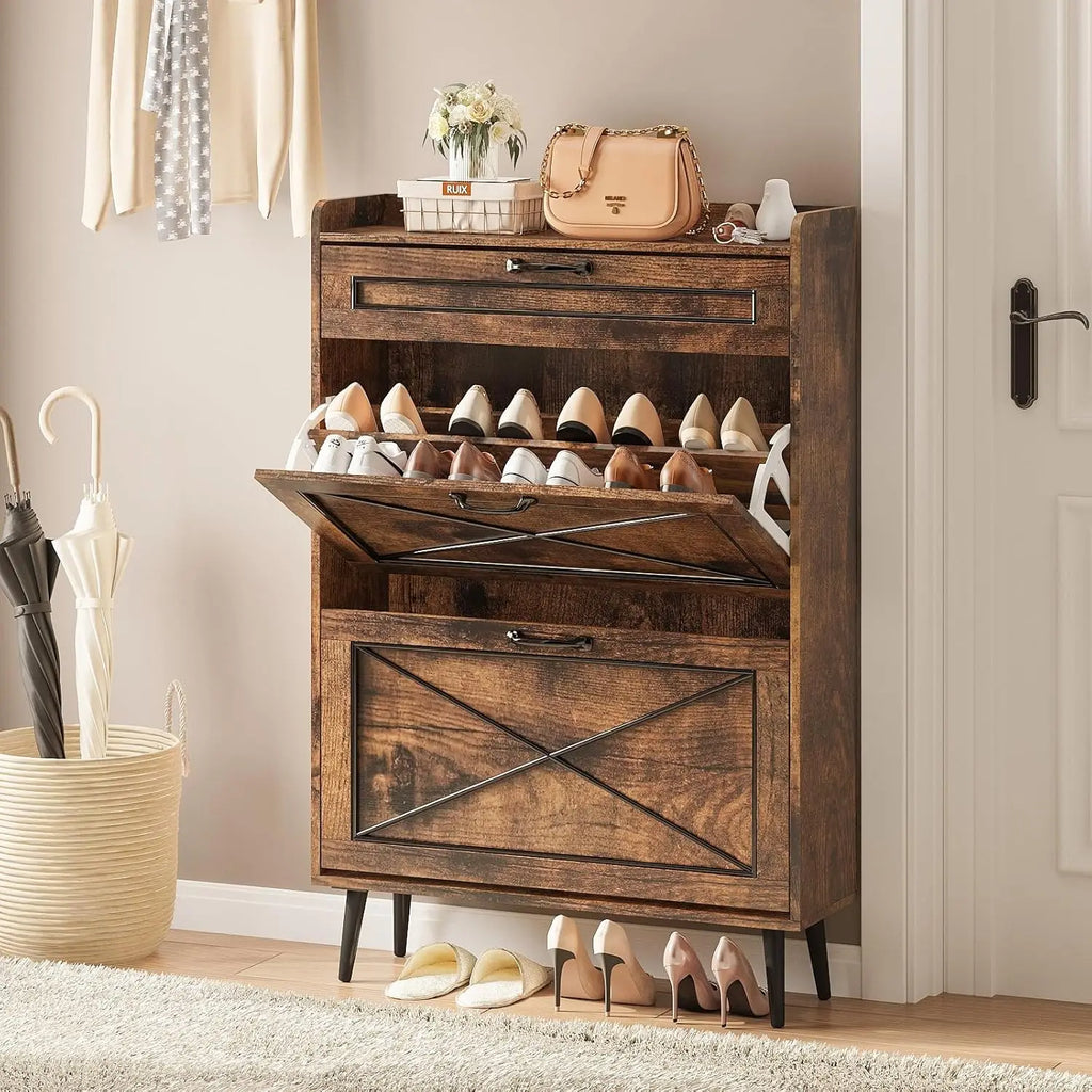 Vabches Shoe Cabinet with 2 Flip Drawers Freestanding Shoe Storage Cabinet Wood Slim Shoe Organizer Cabinet for Entryway Hallway
