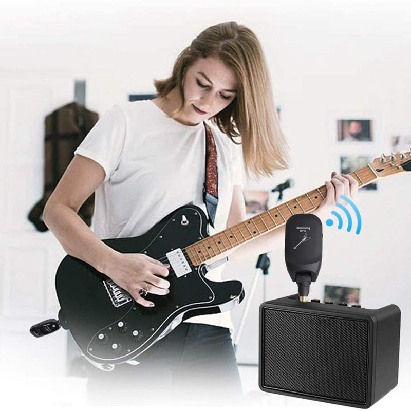 Sistema de guitarra inalámbrico, receptor de 4 canales recargable integrado para transmisor de guitarra eléctrica, piezas de guitarra, pastilla de guitarra
