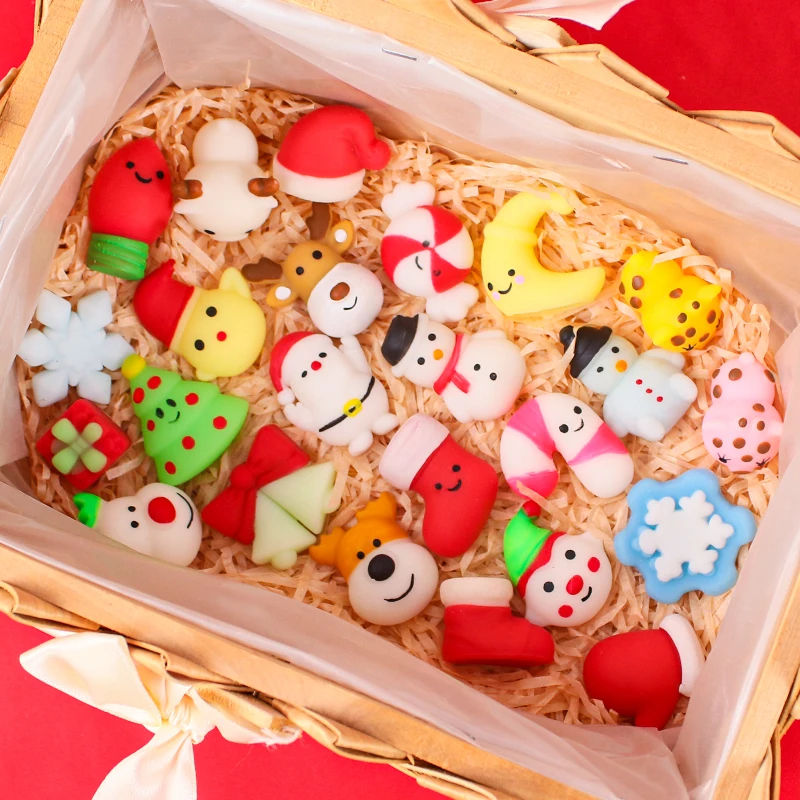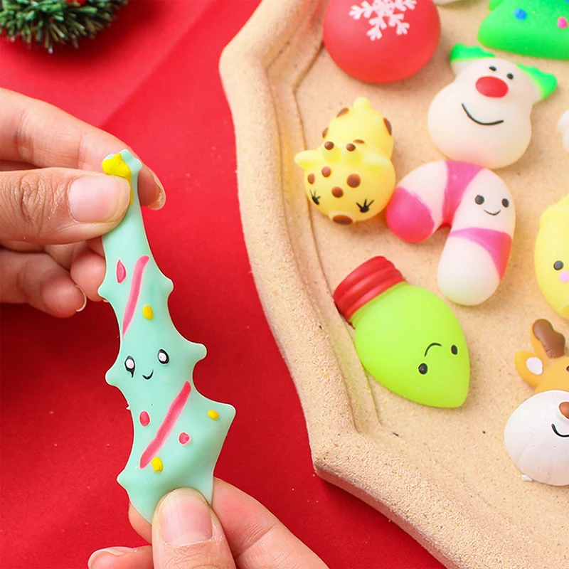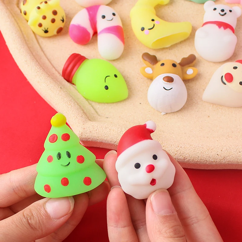 10-50Pcs Christmas Mochi Squishy Decompressio Toys Squeeze Soft Sticky Stress Relief Funny Fidget Toys For Christmas Xmas Gift