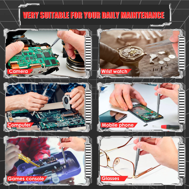 Easy to Carry: The mini repair tool kit is ideal for your daily repairs, such as watch, jewellery, glasses repair and fixing anything with small screws, and also repairing cameras, tablets, computers and more.