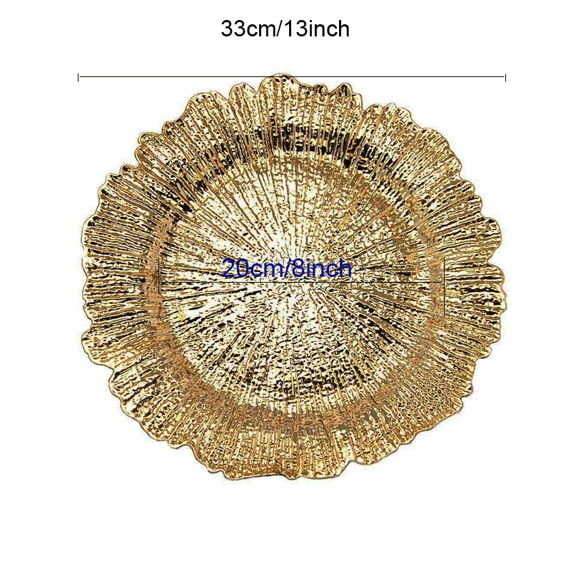 1PC Reef Charger Plate Plastic Decorative Service Plate Gold Silver Dinner Serving Wedding Christmas Decor Table Place Setting
