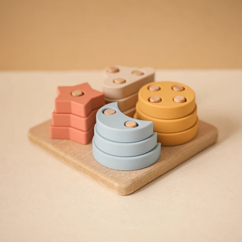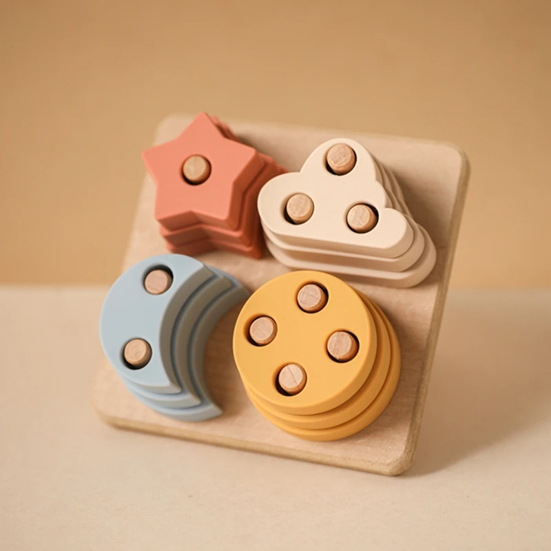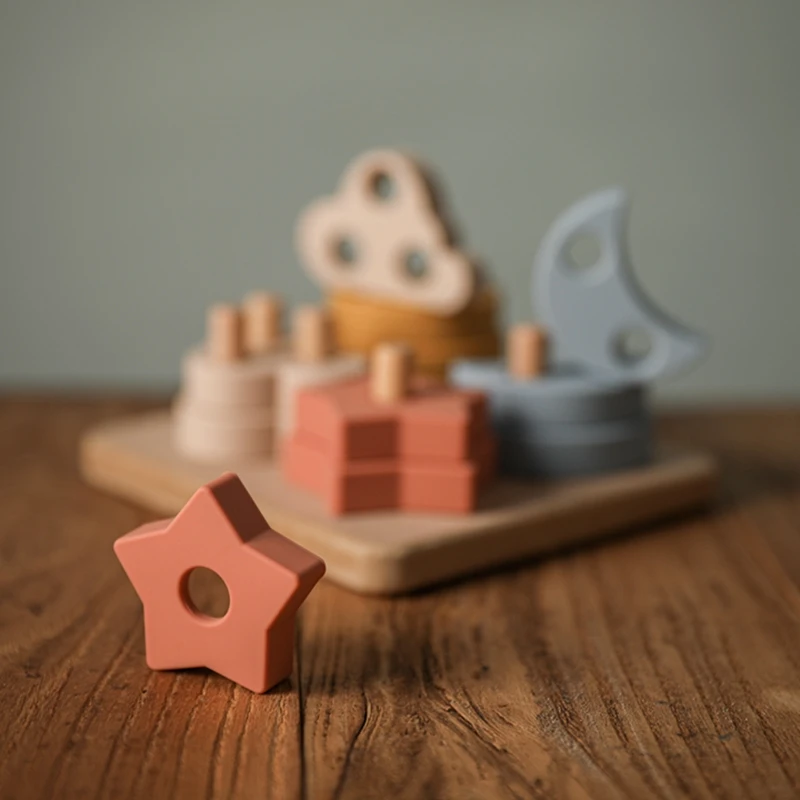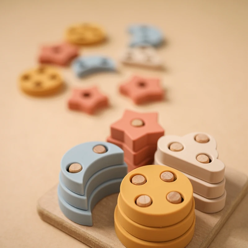 1Set Baby Soft Silicone Stacking Blocks Toys Montessori Puzzle Game Interactive Educational Building Blocks 3D Toy for Kids Gifts