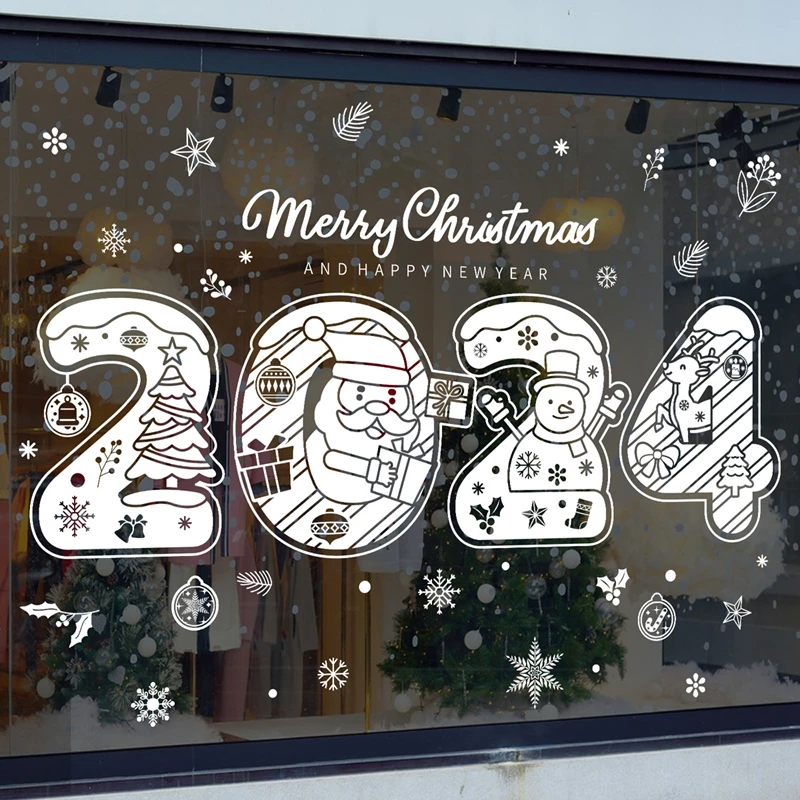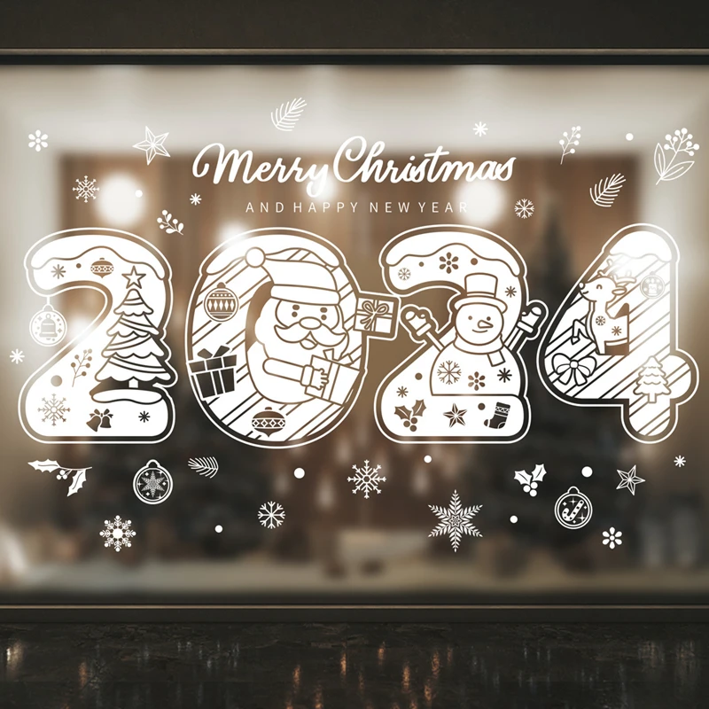 2024 Merry Christmas Window Stickers Santa Claus Snowflake Elk Xmas Tree Sticker Christmas Decorations for Home Happy New Year
