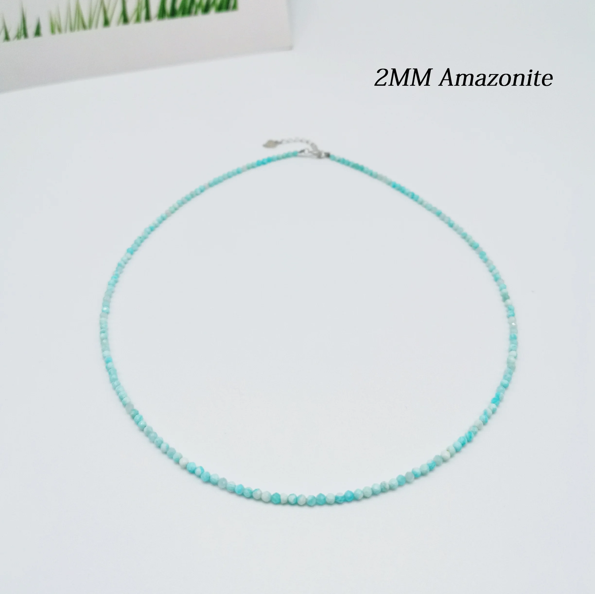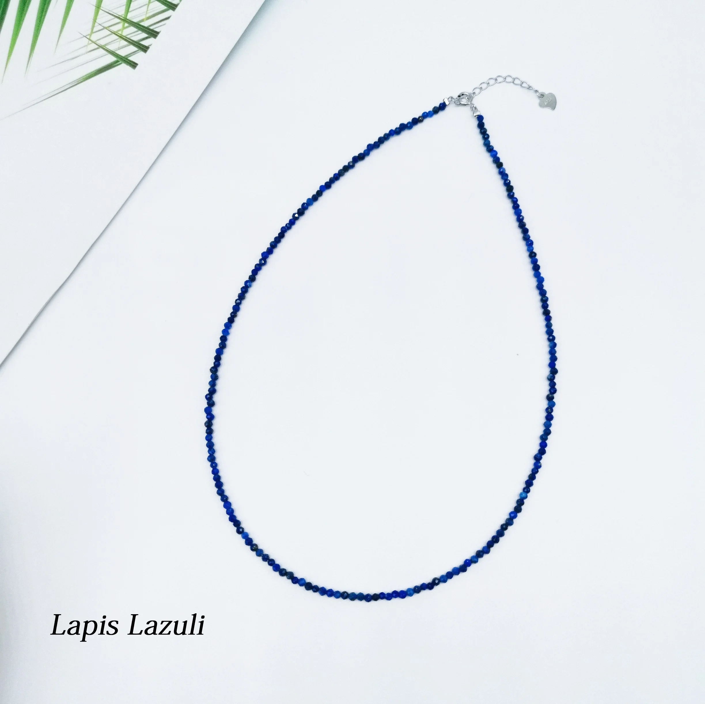 2MM Small Stone Crystal/Agate/Lapis Lazuli/Aquamarine Jewelry with 925 Sterling Silver Accessories Necklace for Women Christmas