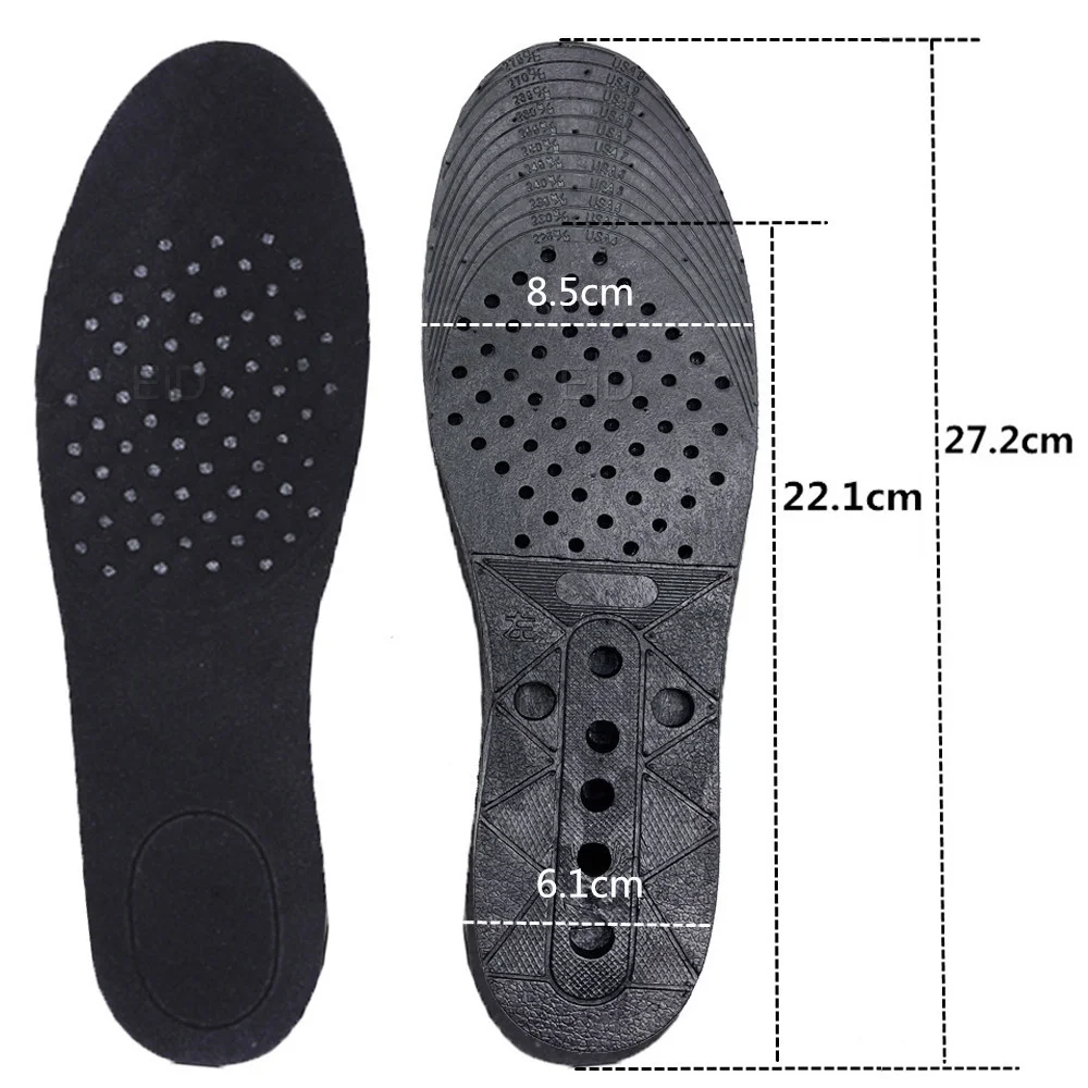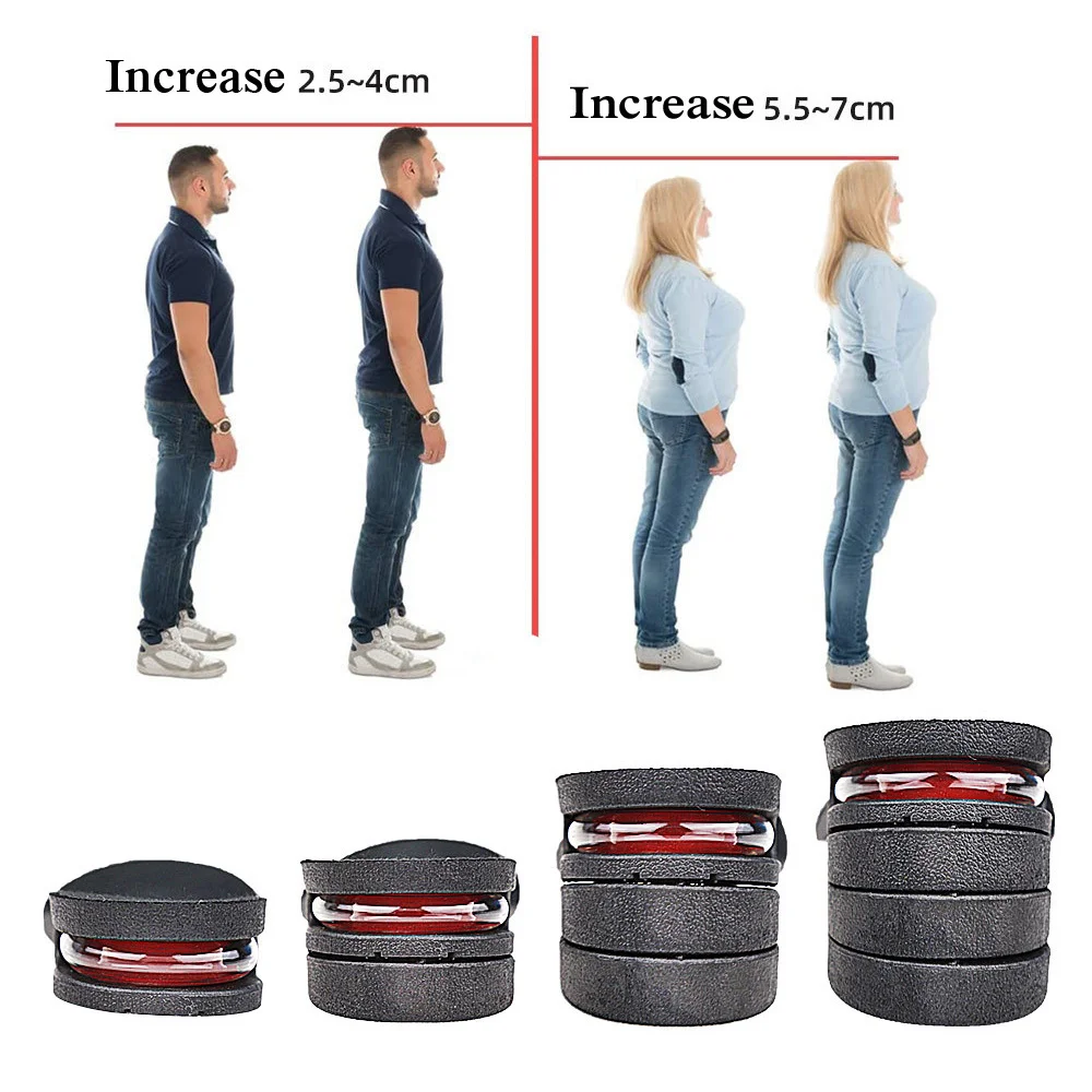 Increased Height: Add 3cm - 7cm heights. Be it your sports shoes, formal or casual shoes, you can insert these in almost all types and look remarkably taller. The best part is, these elevator shoes insoles remain concealed, such that no one ever knows the secret behind your increased height.