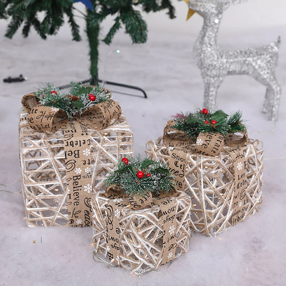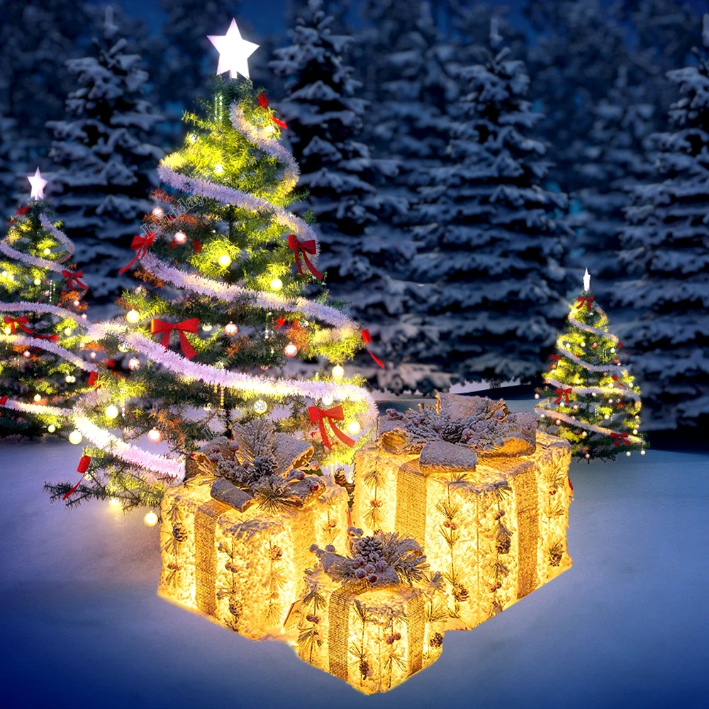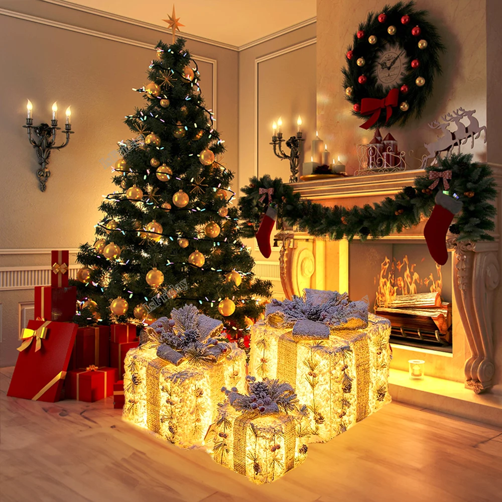 3PCS/Set Christmas Glow Gift Box Christmas Light Up Present Boxes Christmas Decoration For Home Festival Party Supplies