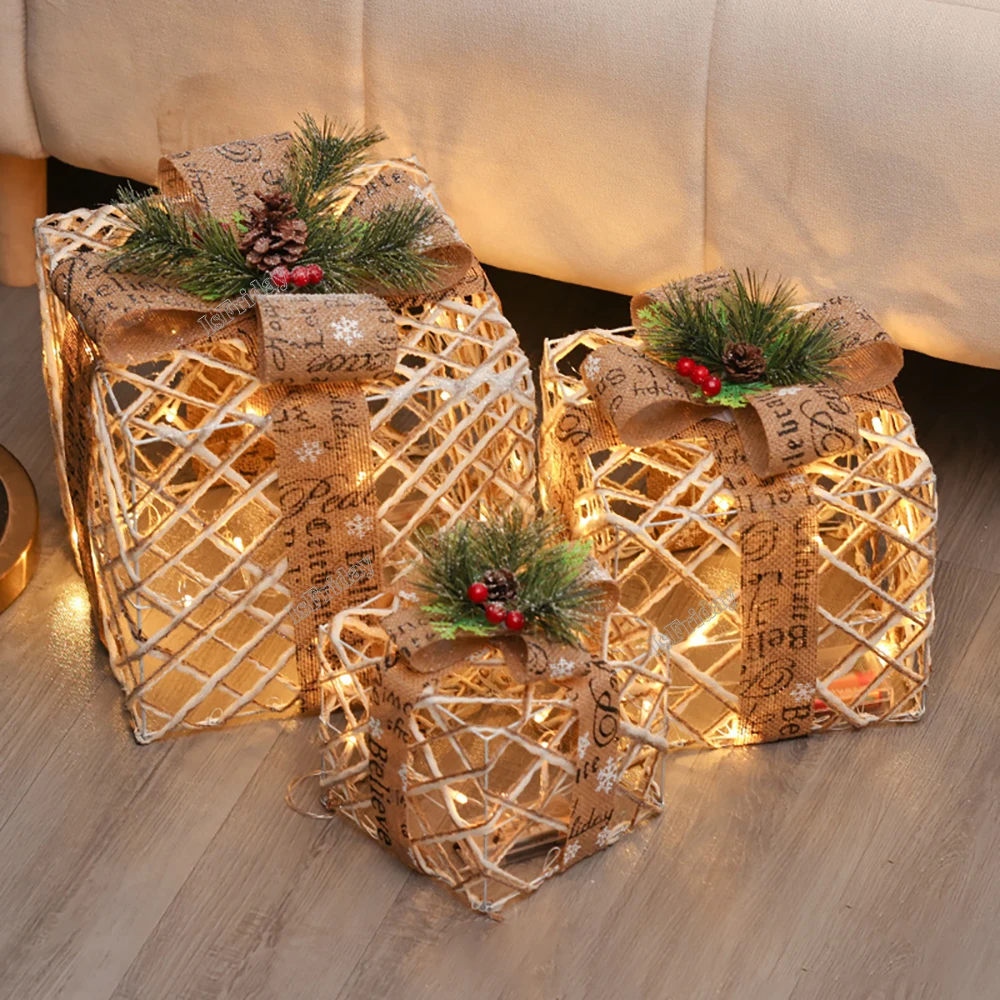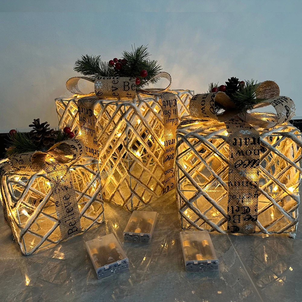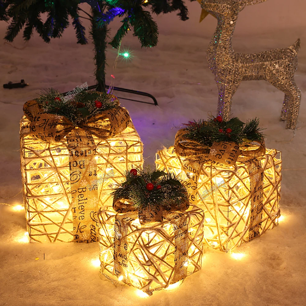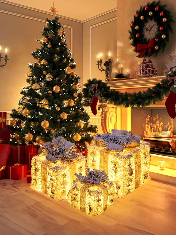 3PCS/Set Christmas Glow Gift Box Christmas Light Up Present Boxes Christmas Decoration For Home Festival Party Supplies