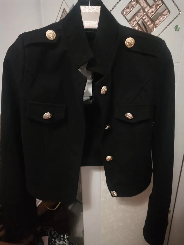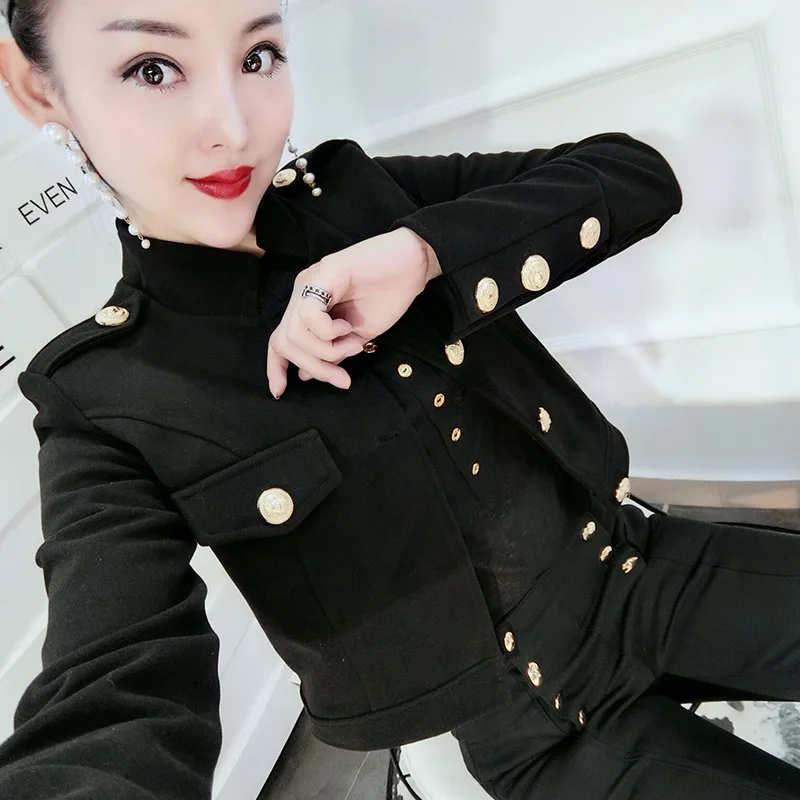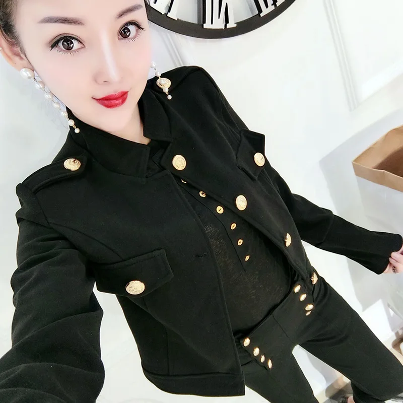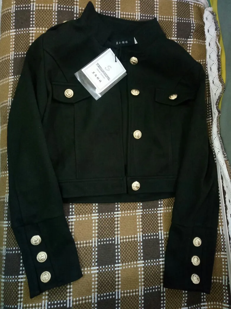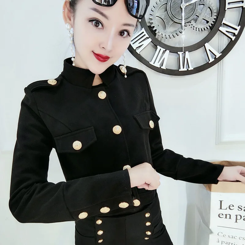 3XL!spring autumn fashion black short jacket women stand collar single breasted top coat