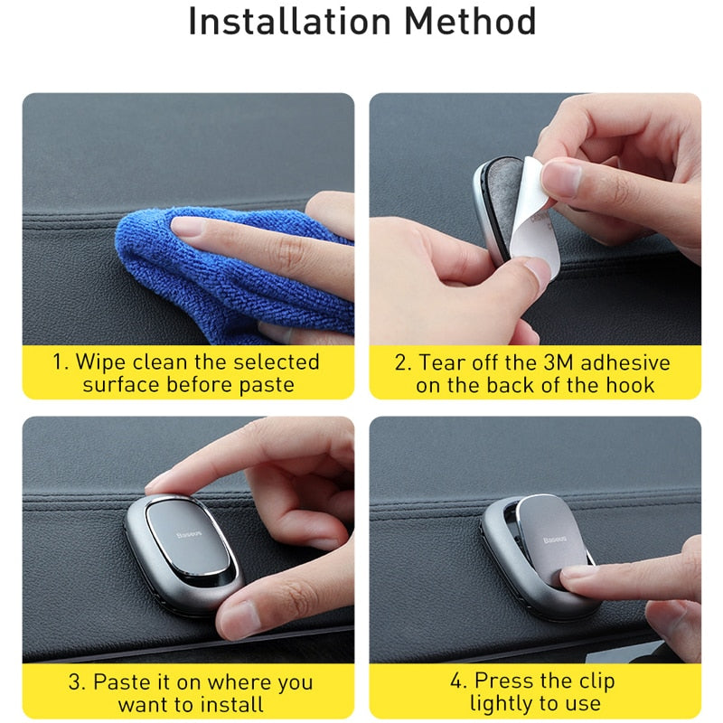Baseus 2Pcs Car Hook Car Sticker Holder Auto Fastener Clip for Cable Headphone Key Wall Hanger