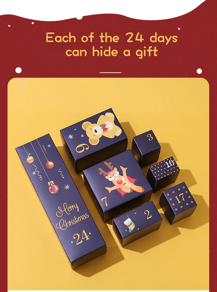 Christmas Advent Calendar 24 Days Surprise Box Birthday Countdown Empty Gift Box DIY Surprise for Kid Lovers New Year Decoration
