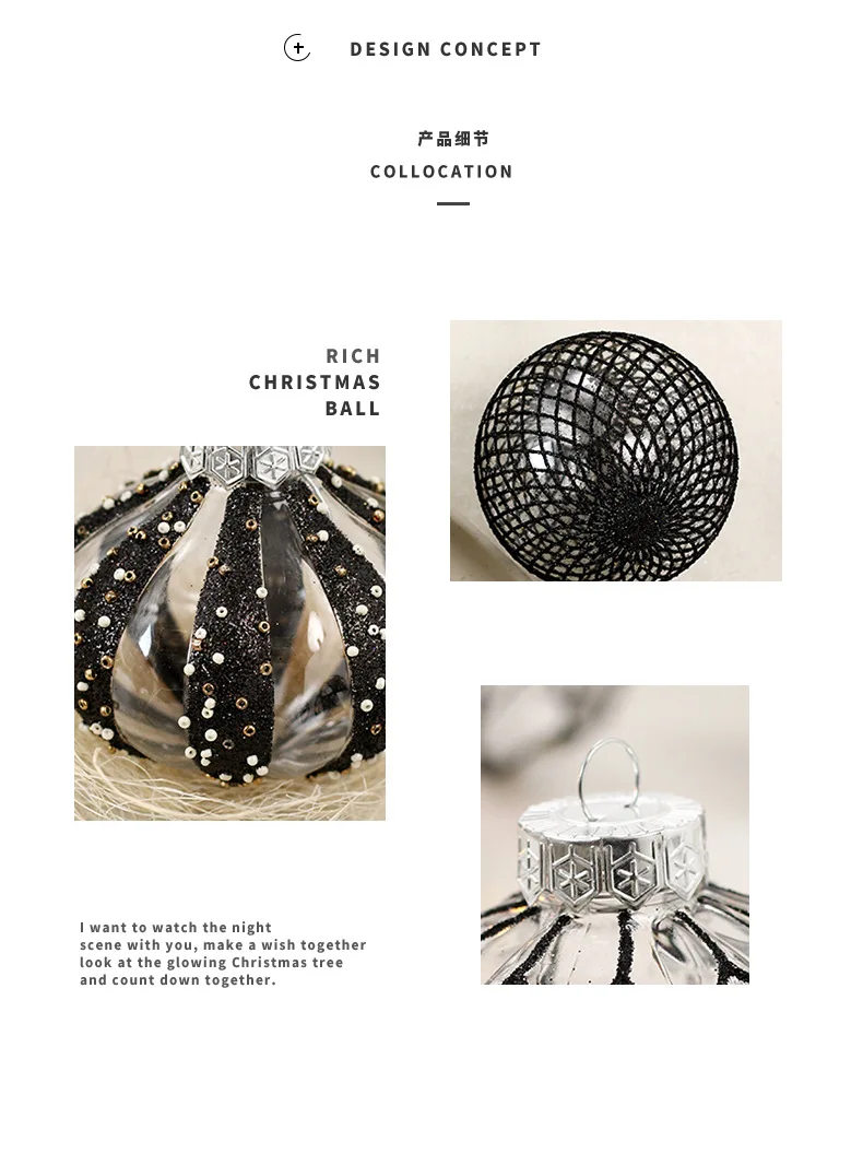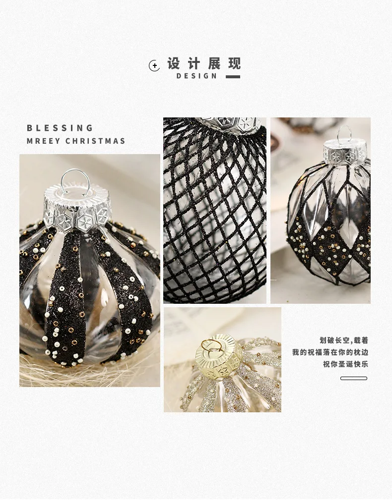 Christmas Ball Decorations Transparent Painted PET Christmas Ball Set Ornaments Christmas Tree Accessories Pendant 8cm/9pcs