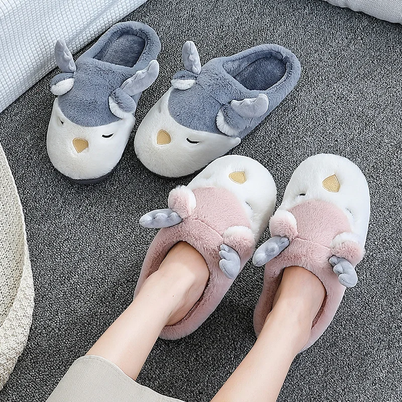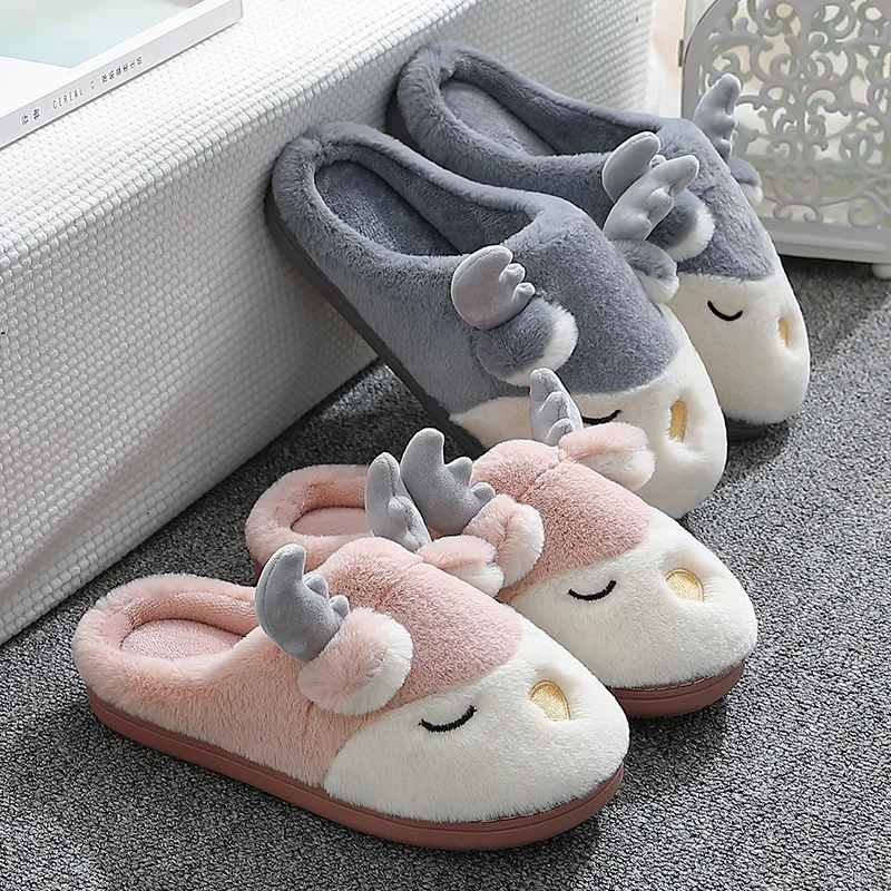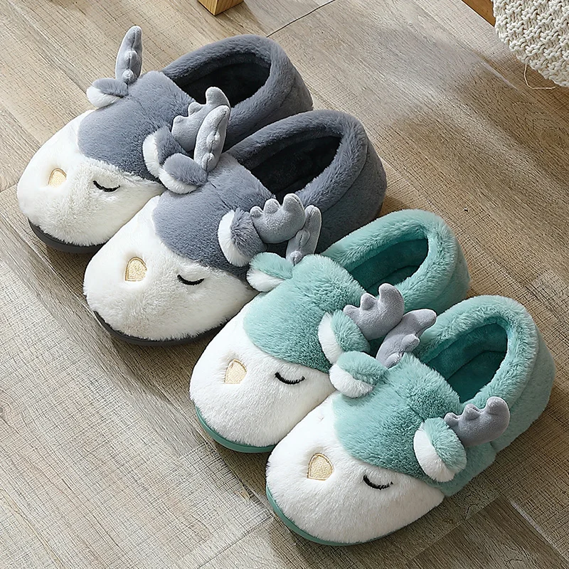 Couples Women Winter Home Slippers Christmas Cartoon Reindeer Non Slip Soft Warm Men House Shoes Indoor Bedroom Floor Footwear