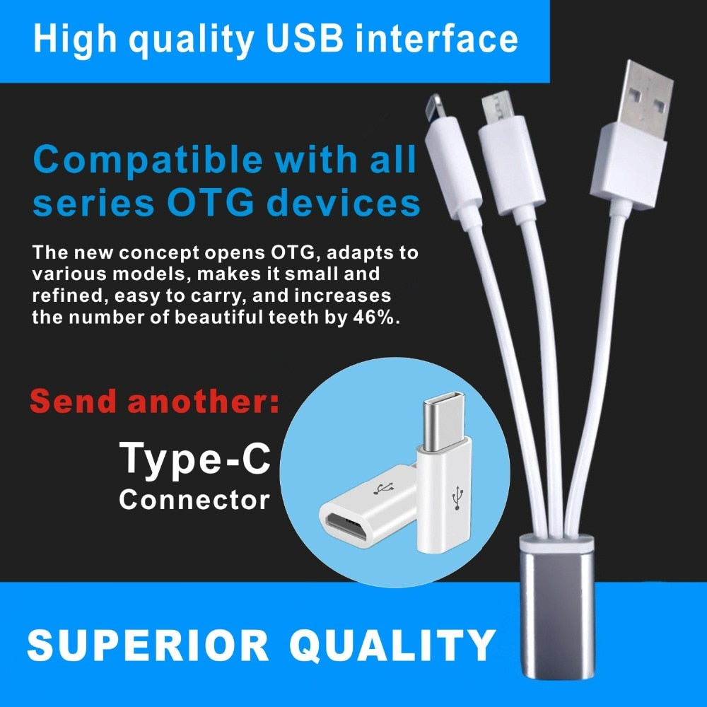 Dreifach-Schnittstellenadapter: Passend für Android-, Typ-C- und iOS-Smartphones, USB-Ladegeräte
