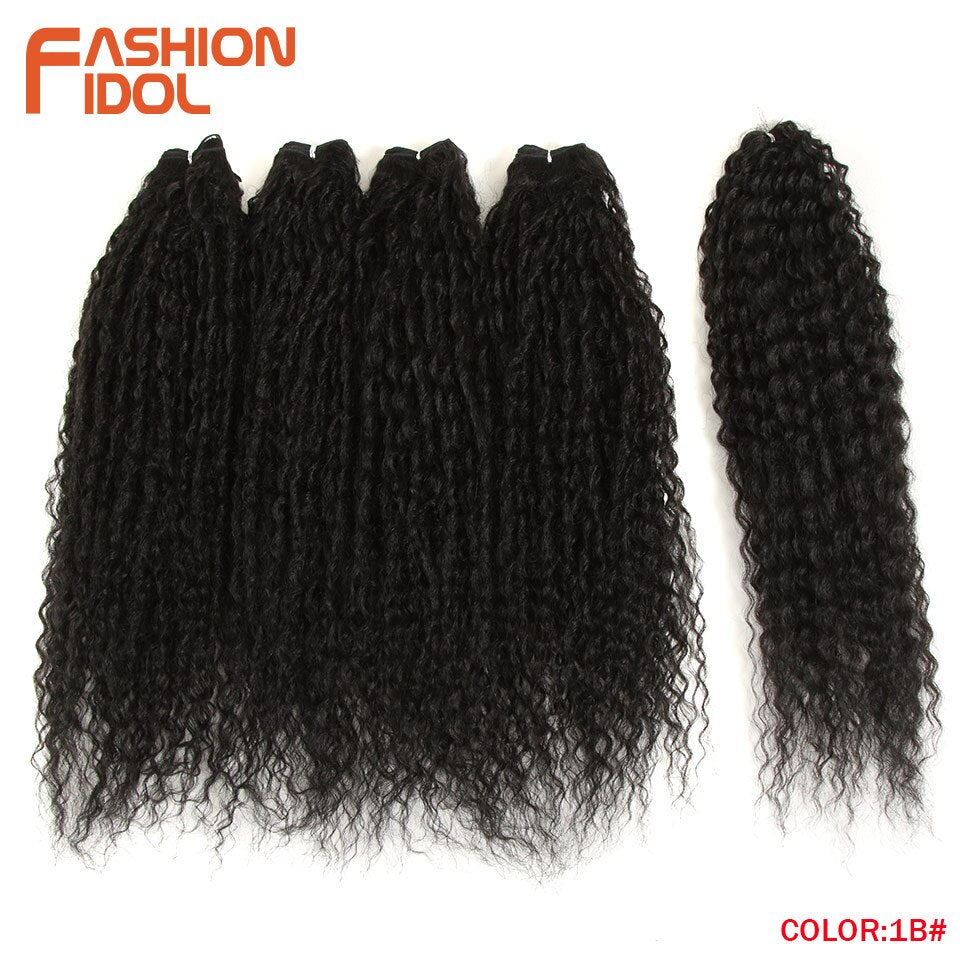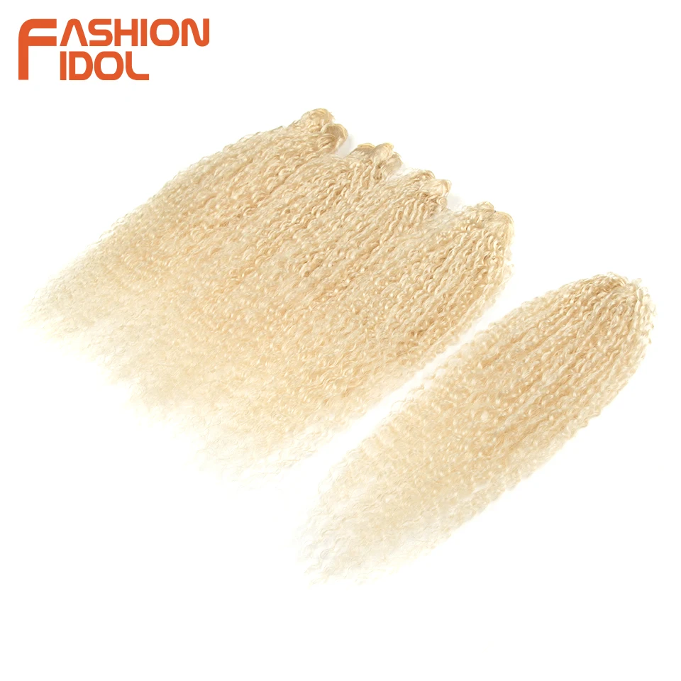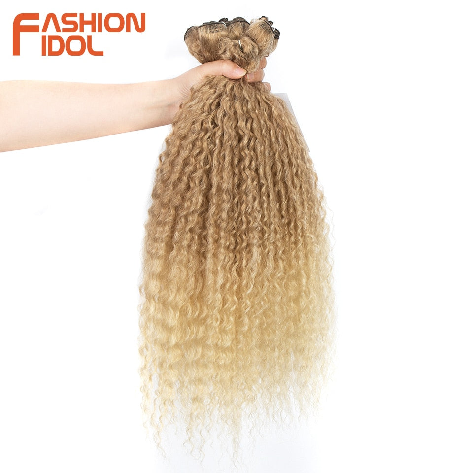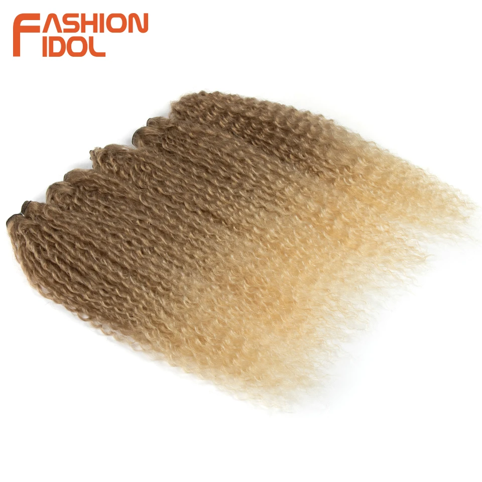 FASHION IDOL Afro Kinky Curly Hair Bundles 5pcs/pack 24 inch Ombre Blonde Nature Black Color Synthetic Hair Weave Bundles Fiber
