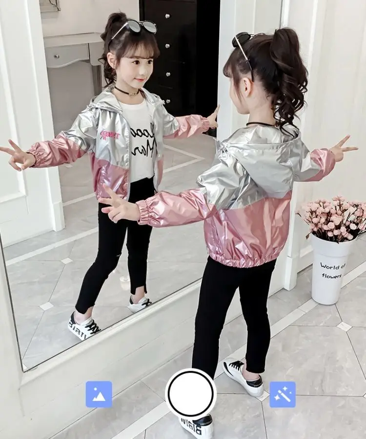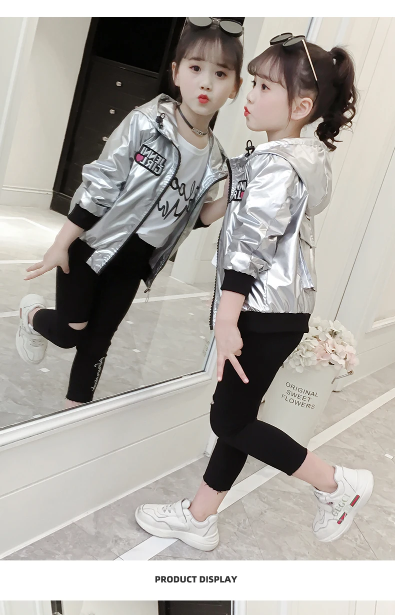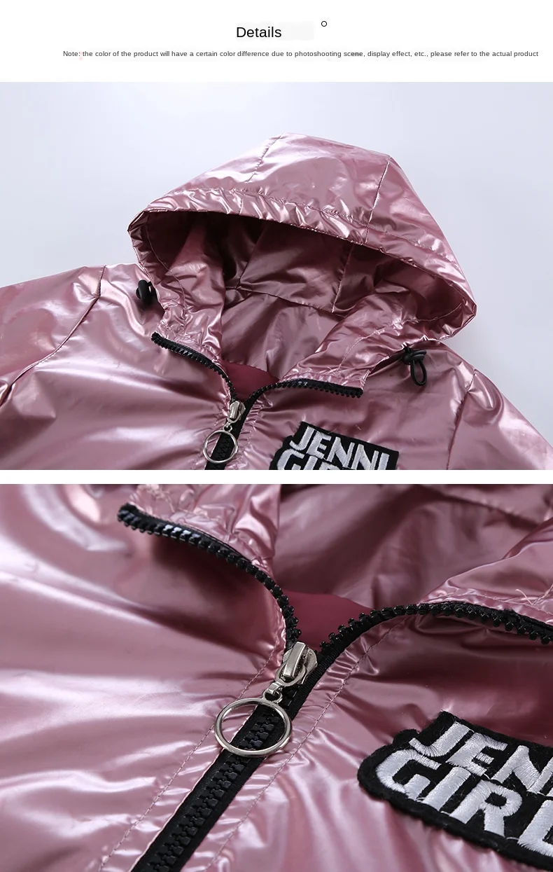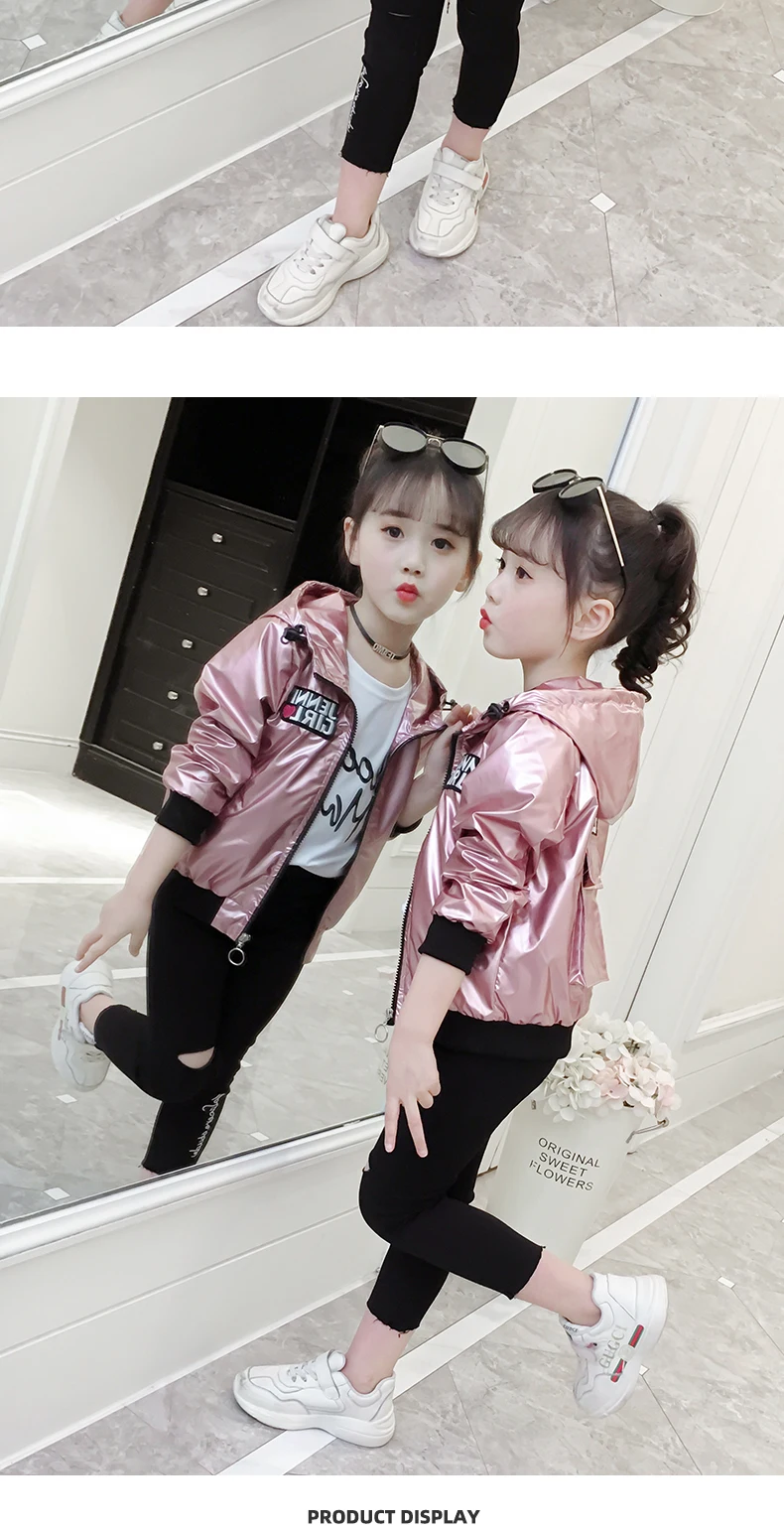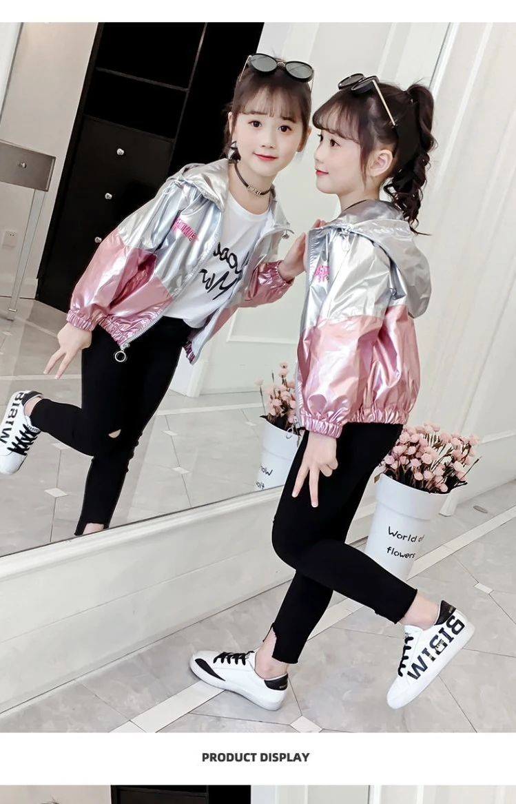 Fashion Shiny Baby Girl's Bomber Jacket New Spring Fall Baseball Jacket Girl Kids Bright Outerwear Tops Outfits Windbreaker Coat