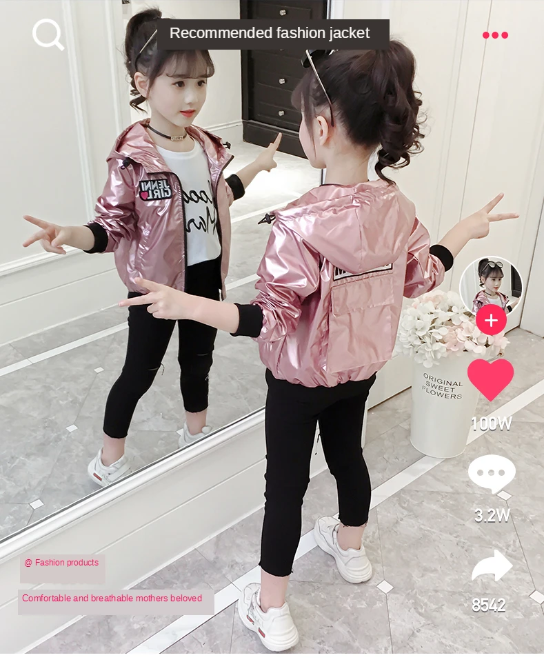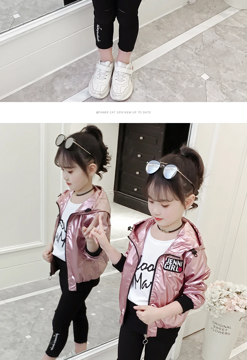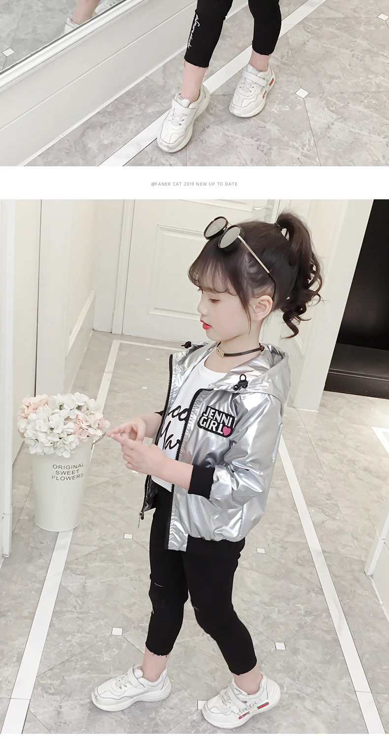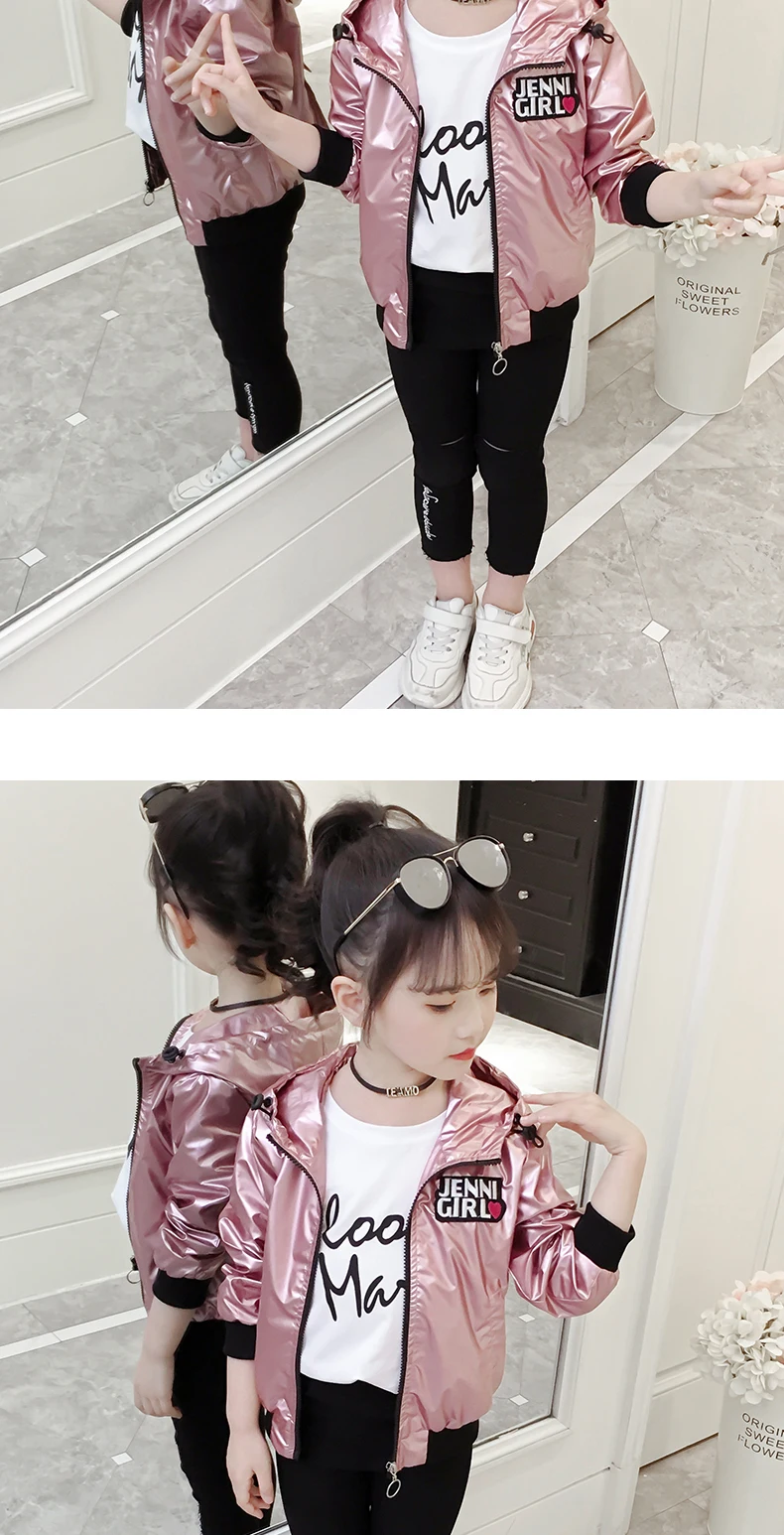 Fashion Shiny Baby Girl's Bomber Jacket New Spring Fall Baseball Jacket Girl Kids Bright Outerwear Tops Outfits Windbreaker Coat